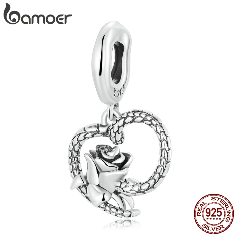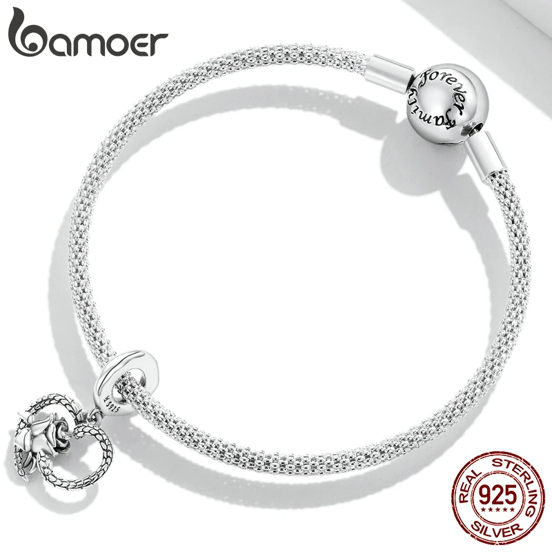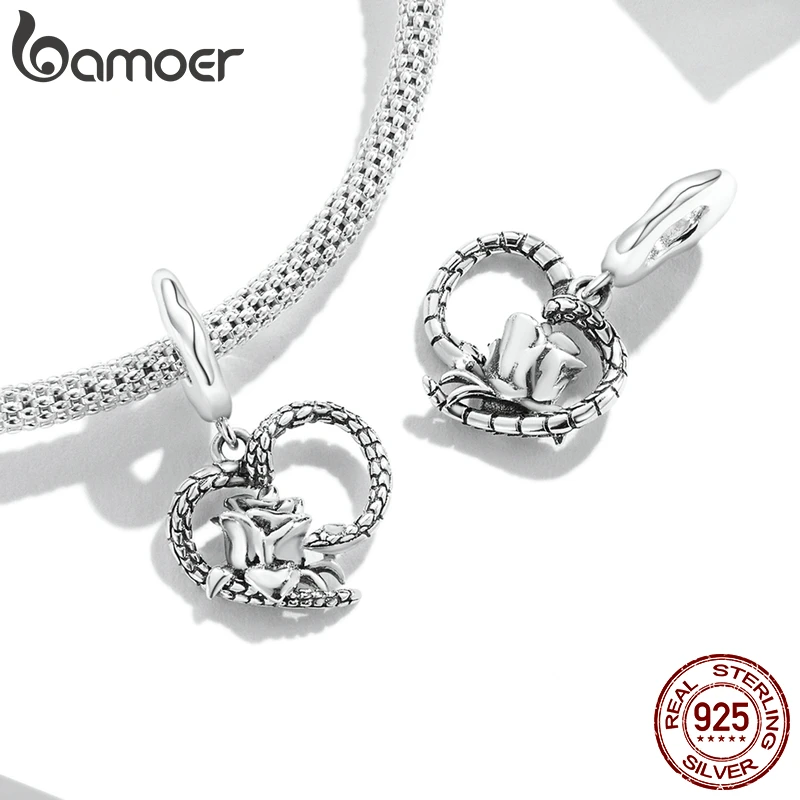 Женский винтажный браслет Bamoer, браслет из стерлингового серебра 925 пробы с подвеской в виде змеи и розы, ювелирные украшения, Подарочные Подвески