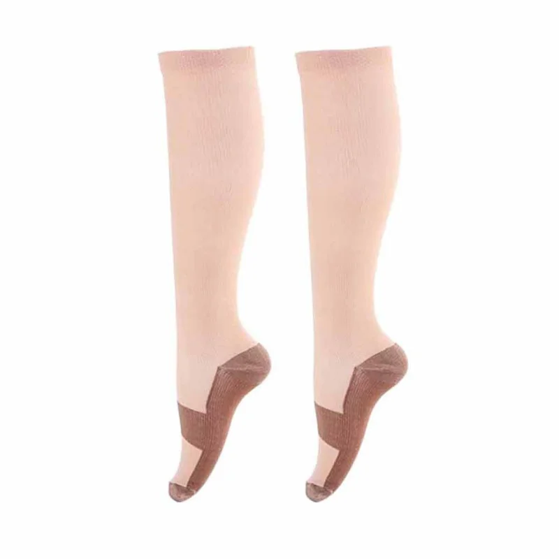 Пара поддерживающих высоких носков до колена, высокие эластичные носки против усталости стоп, мягкие чудесные медные Компрессионные носки для снятия симптомов усталости