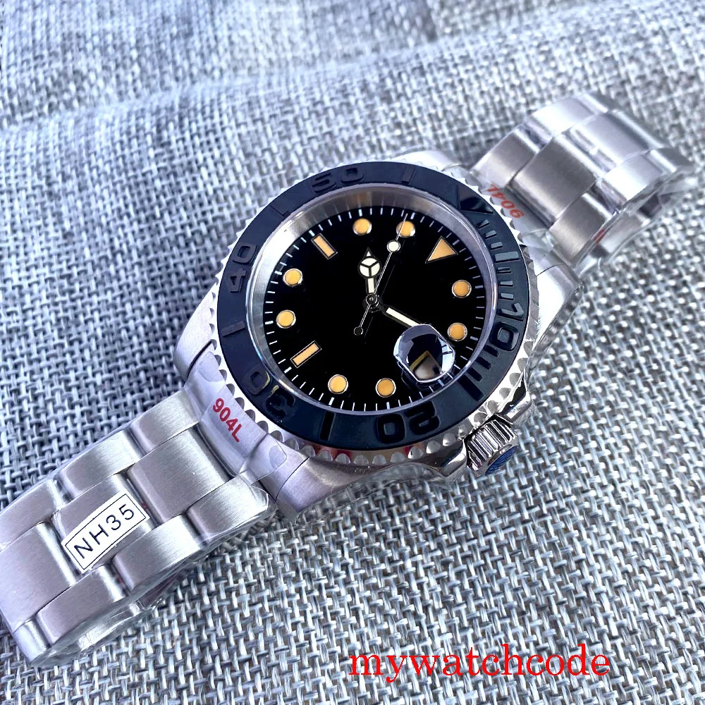 40 мм черный циферблат 24 Драгоценности NH35A механические Автоматические Мужские часы с сапфировым стеклом 10ATM керамический ободок 120 кликов 6 моделей