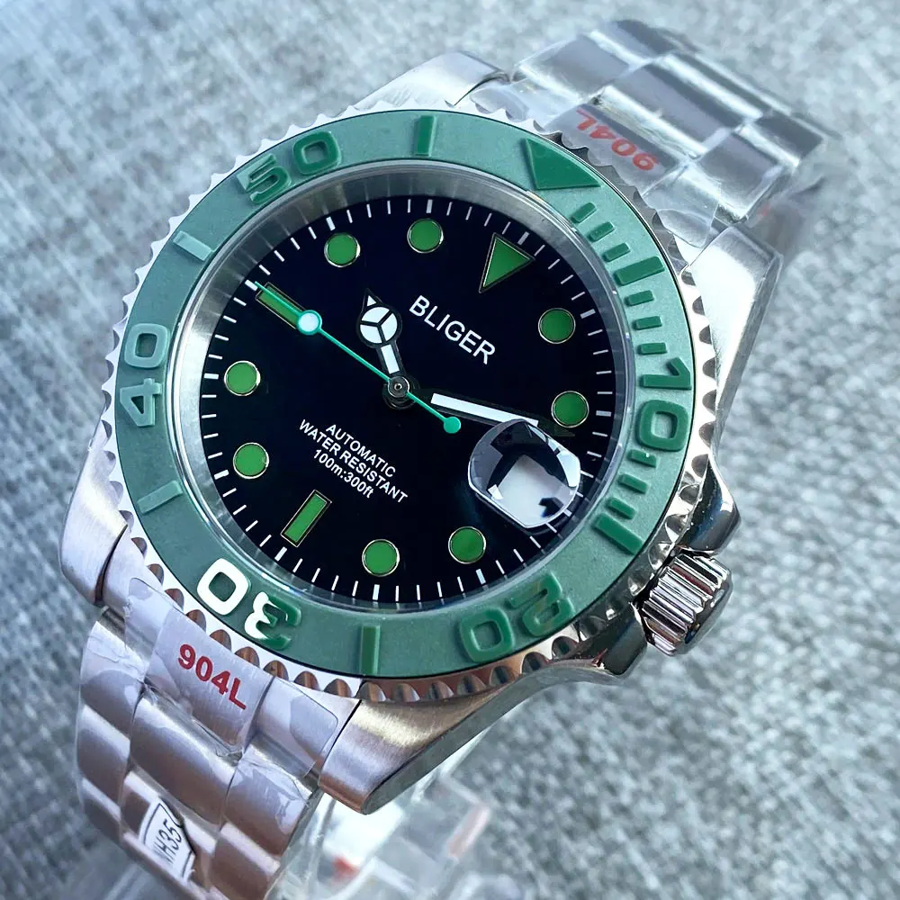 Браслет BLIGER мужской, зеленый, с автоподзаводом, 36 мм, NH35A