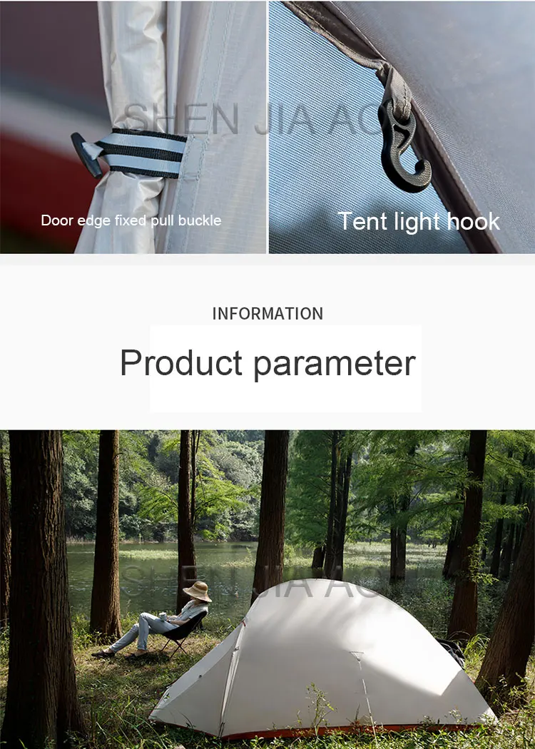 Модель: NH15T002-TНазвание: палаткаВес палатки: 1,24 кгСтруктура палатки: двойная палаткаАдаптация к сезону: Всесезонная учетная записьСостояние строительства: необходимо построитьСтруктура пространства палатки: одна спальняВодонепроницаемый индекс внешнего счета: более 3000 ммНижний водонепроницаемый индекс счета: более 3000 ммМатериал кронштейна: алюминиевый сплавМатериал подошвы: 150D антиразрывная клетчатая ткань ОксфордМатериал внешнего счета: 20D нейлон силикон, Водонепроницаемый 4000 ммВнутренний материал: B3 марля + анти-флок шелк + 20D нейлон силикон, Водонепроницаемый 4000 ммХранение: 45 × 12 смАксессуары: ногти × 12 ветряного троса × 3 (вес 0,12 кг)Посылка Вес: 2 кгРазмеры посылка: 45*15 см