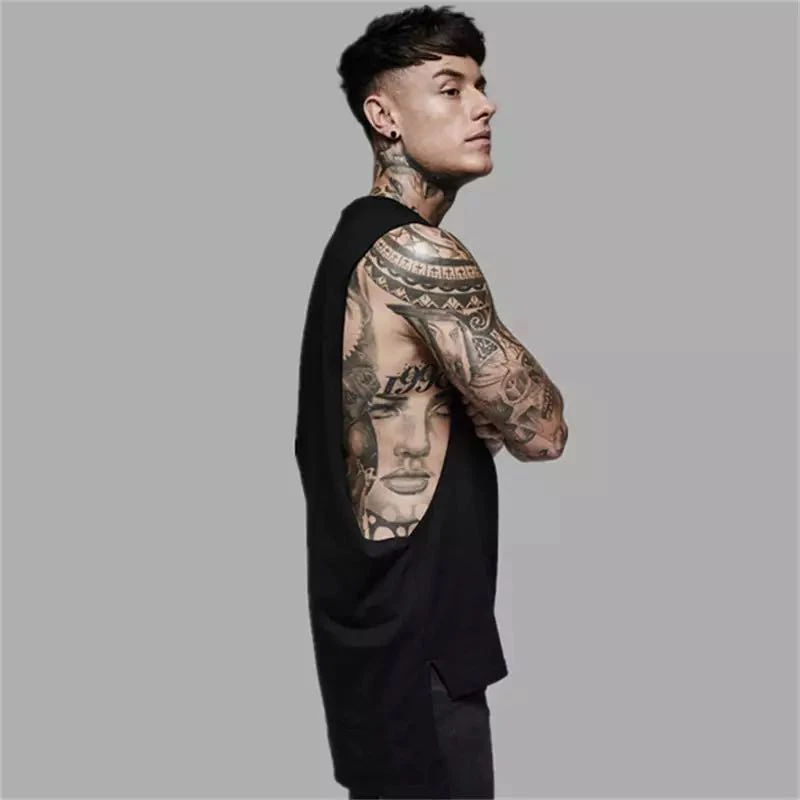 Мужская широкая открытая Сексуальная майка для мышц, летняя одежда для тренажерного зала, хлопковая рубашка без рукавов для фитнеса и тренировок, мужские длинные жилеты для стиле хип-хоп