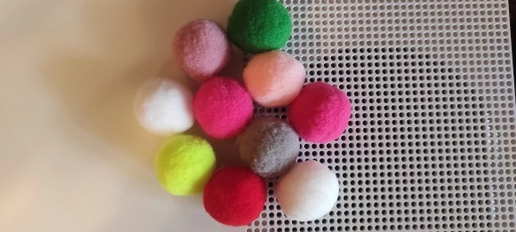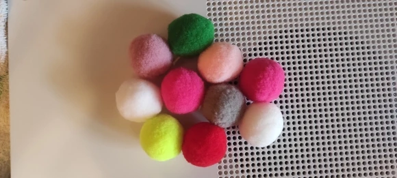 Шарики довольно крупные, отлично подойдут для игры кошке или котенку. Душевно уакованы продавцом. Все разных цветов. Доставили вовремя. Магазин рекомендую. Спасибо!