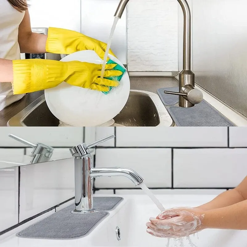 Впитывающий Коврик для кухонного смесителя, защита от брызг на раковину, из микрофибры, защита от брызг на кран для кухни и ванной комнаты
