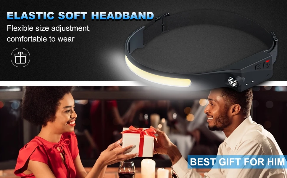 Налобный фонарь с гибким датчиком COB, светодиодный налобный фонарь...