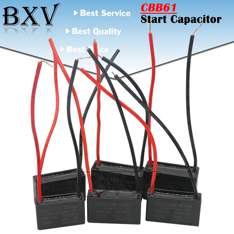 CBB61 1 мкФ Ф 1,2 мкФ 1,5 мкФ 2 мкФ 2,5 мкФ 3 мкФ Ф 3,5 мкФ 4 мкФ Ф 4,5 мкФ пусковой конденсатор вентилятора переменного тока 450 в CBB конденсатор двигателя