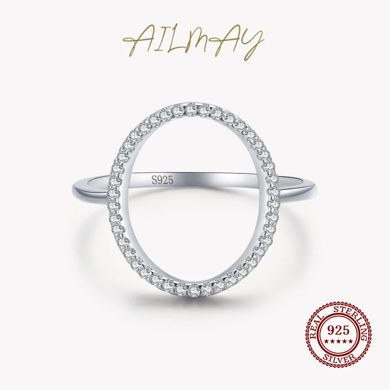 Ailmay Новое поступление 100% Стерлинговое Серебро 925 пробы модное круглое ослепительное CZ Кольцо на палец для женщин и девочек аксессуары для вечеринок ювелирные изделия