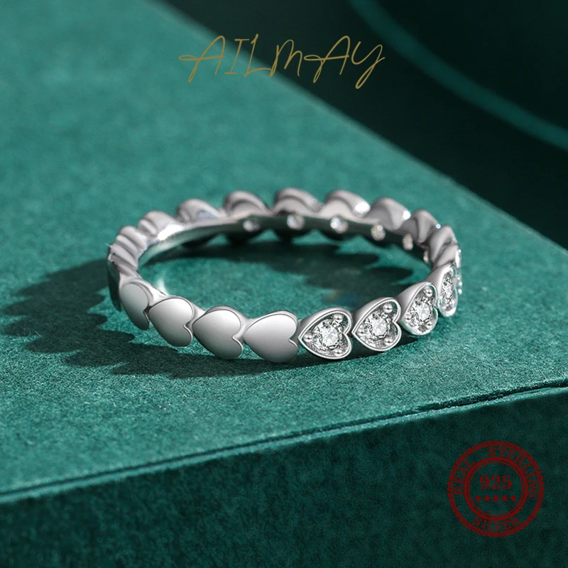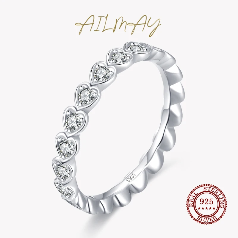 Ailmay CZ штабелируемые кольца на палец в форме сердца из настоящег...