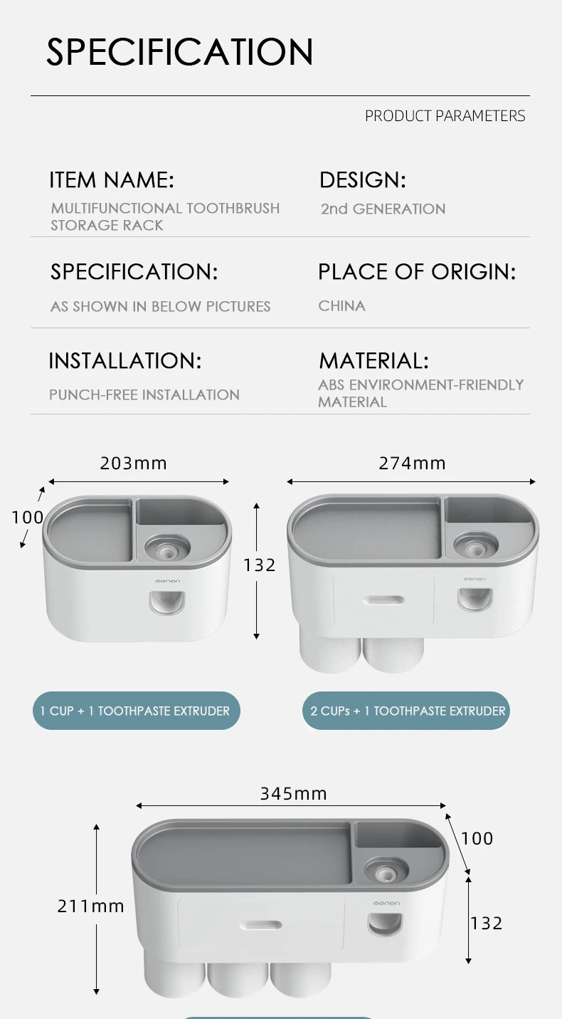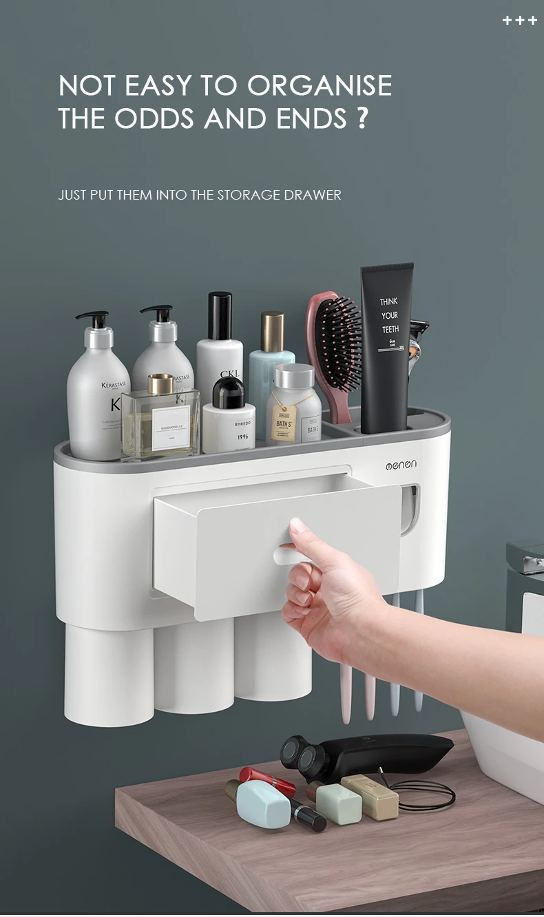 2. Многофункциональная зубная щетка-держатель, который объединяет держатель зубной щетки + 2 соковыжималки для зубной пасты + хранение в одном, не занимает места и удобен и практичен