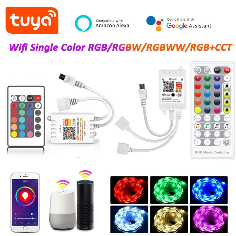 Умный светодиодный Wi-Fi контроллер с поддержкой Alexa Google Home, контроллер для светодиодных лент RGBWRGBWW RGBCCT, Wi-Fi, RGB, 5-24 В постоянного тока