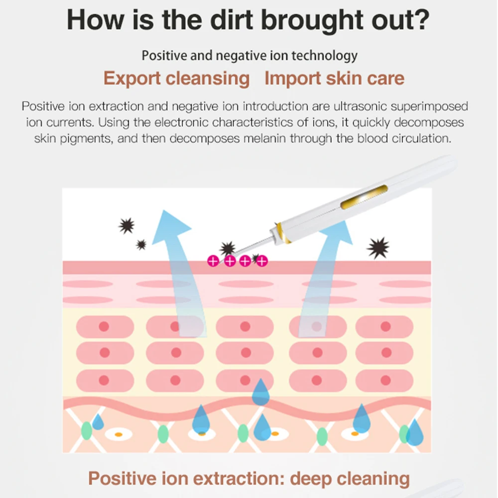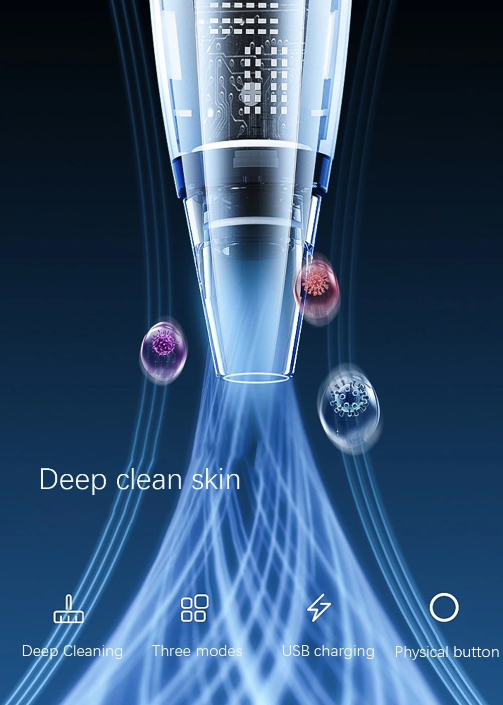 Ультразвуковая технология для глубокой очисткиУльтразвуковая Вибрация 24000 Гц в секунду: вода распыляется ультразвуковой вибрацией, а поры и грязь встряхиваются в «мелкие частицы», не повреждая кожуИон + ЭкспортМягко отшелушивает, глубоко оседает поры, делает кожу чистой и тщательнойИон-импортПродукты по уходу за кожей глубоко проникают в кожу и эффективно впитывают ееEMS массаж микро-токаБлагодаря EMS микро-току, стимулирует выработку коллагена и разглаживает кожу