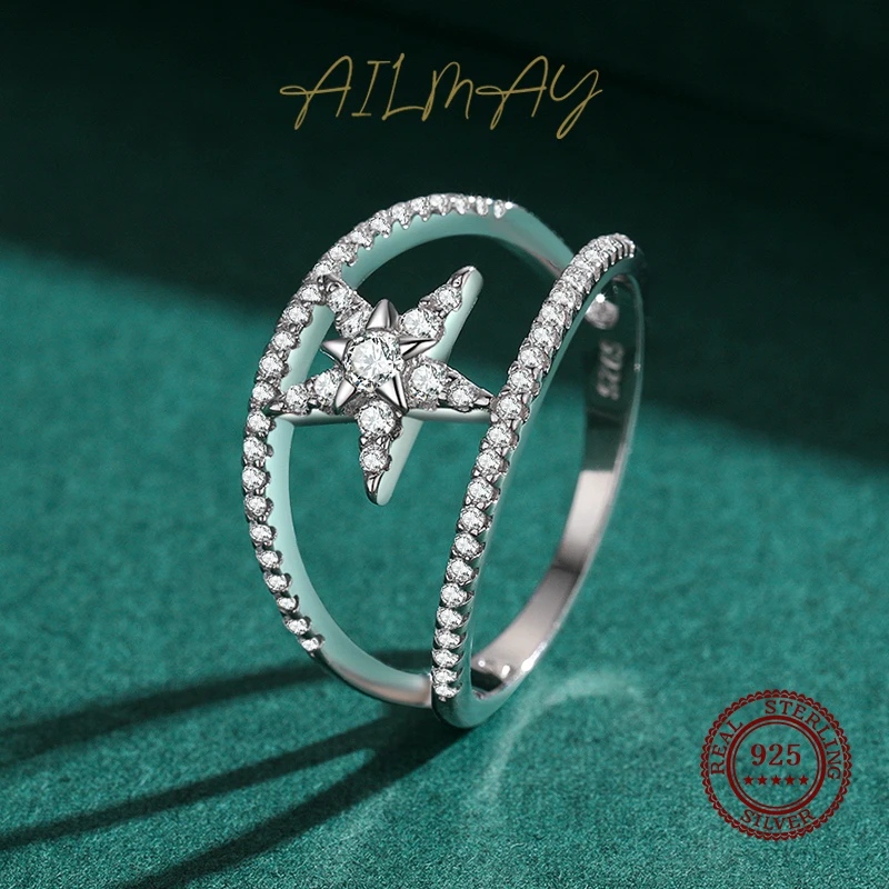 Ailmay Новинка 100% Серебро 925 пробы модное Сверкающее AAAAA CZ Кольцо на палец для женщин Роскошные Свадебные обручальные ювелирные изделия