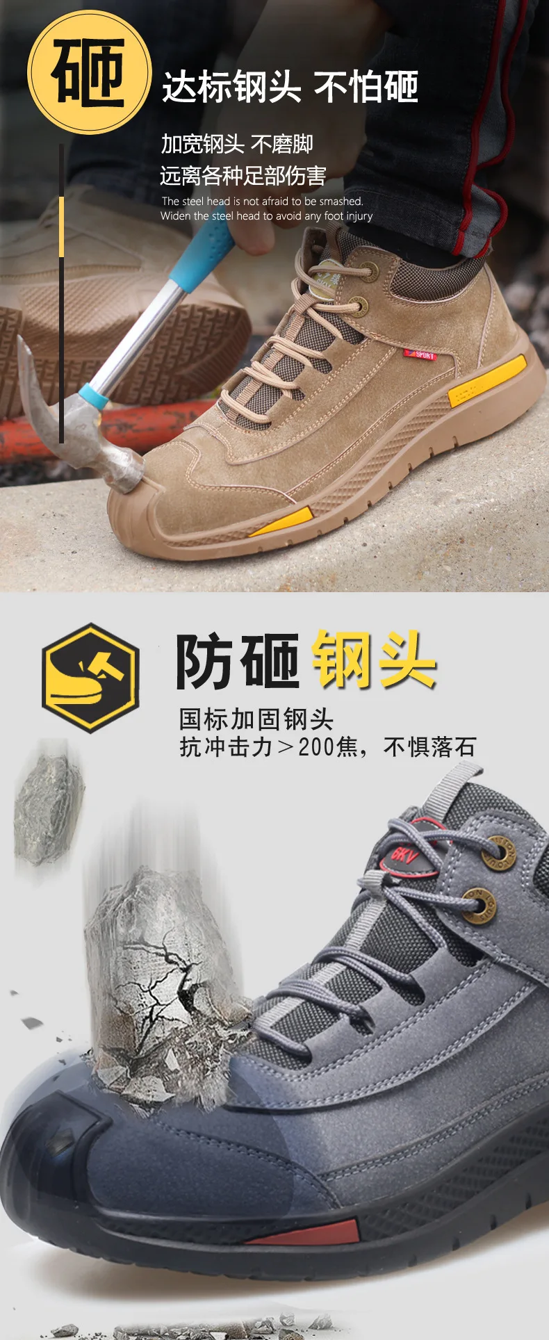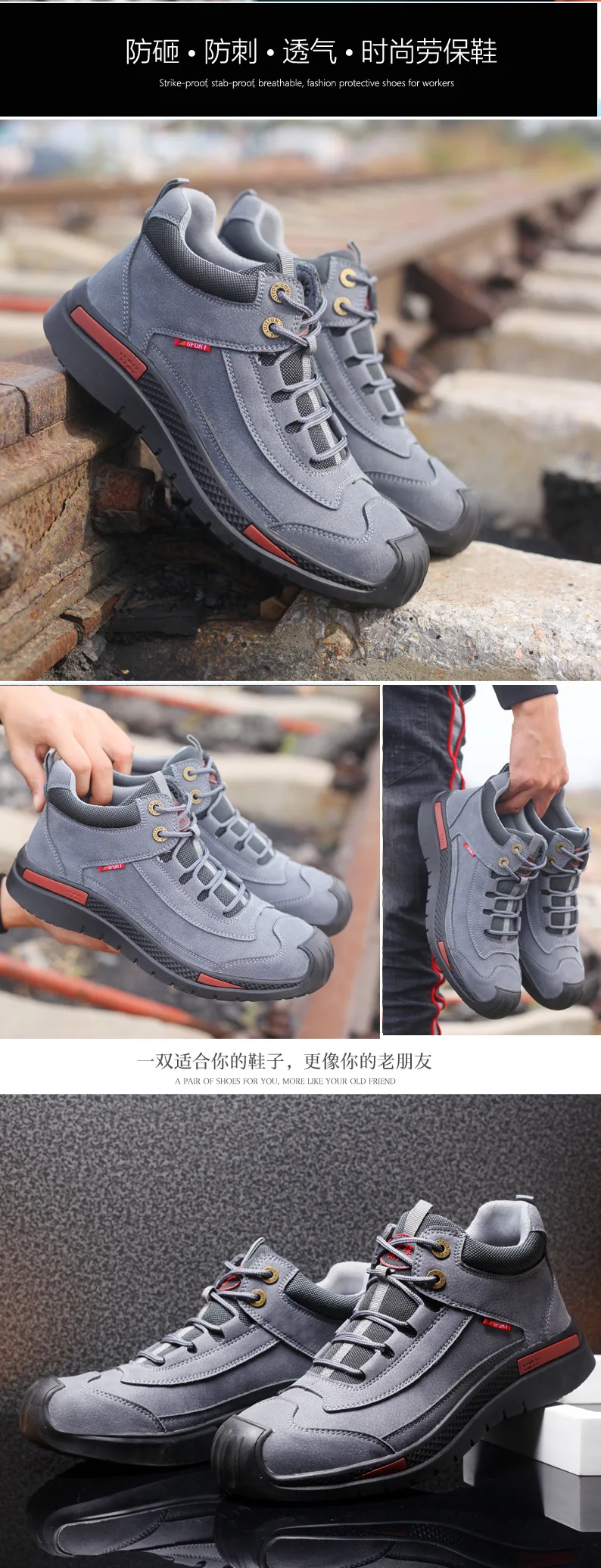 Новые дышащие мужские кроссовки из коровьей замши, устойчивые к проколу, рабочие кроссовки со стальным носком, рабочая обувь, неразрушенные рабочие ботинки