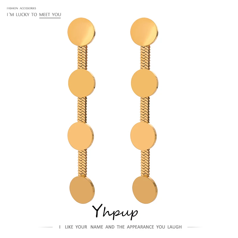 Круглые висячие серьги Yhpup из нержавеющей стали, эффектные металлические золотые необычные серьги для женщин, бижутерия для вечевечерние, подарок