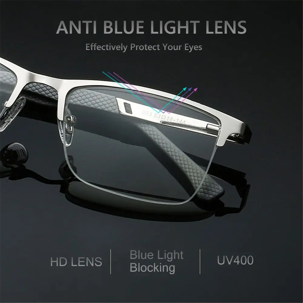 Очки для чтения в деловом стиле мужские, модные с Anti Blue светильник металлической полуободковой оправой, с антибликовым покрытием, для работы с компьютером с защитой от ультрафиолета, + 1,0 + 4,0