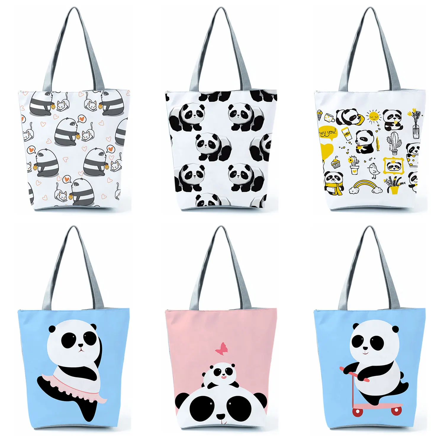 Милые сумки с принтом панды, женская сумка для покупок с мультипликационным принтом, многоразовая Повседневная сумка через плечо, пляжная сумка для путешествий, женская сумка-тоут