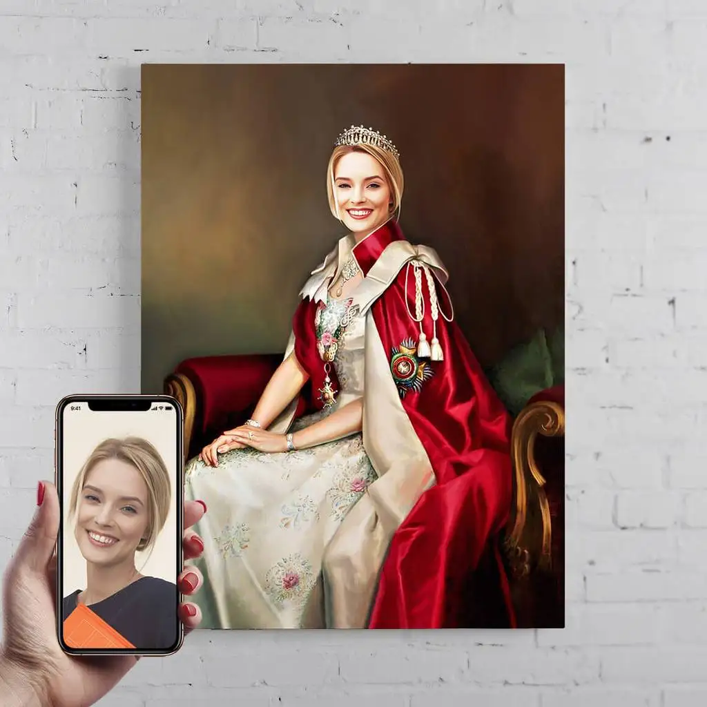 Индивидуальный портрет, холст, живопись постер, королевская женщина, общий Женский уникальный подарок, художественное украшение для дома