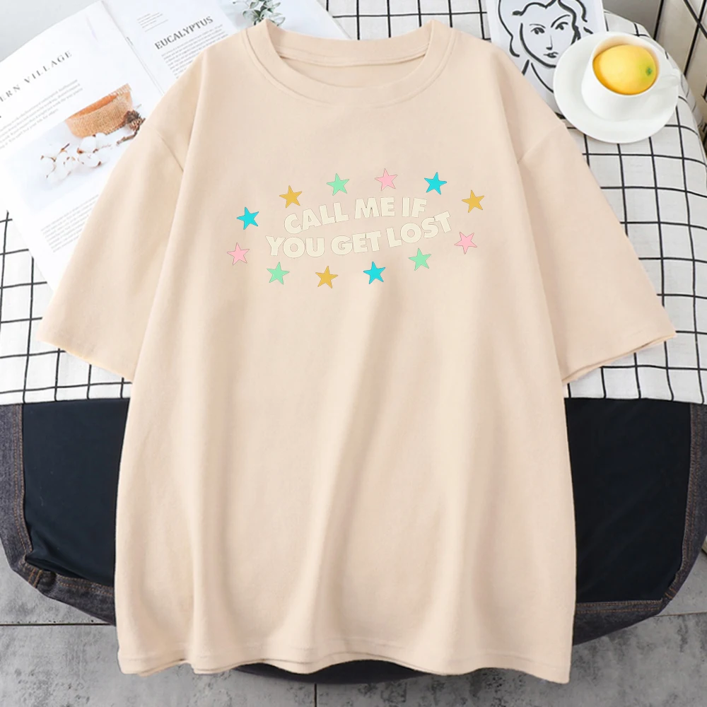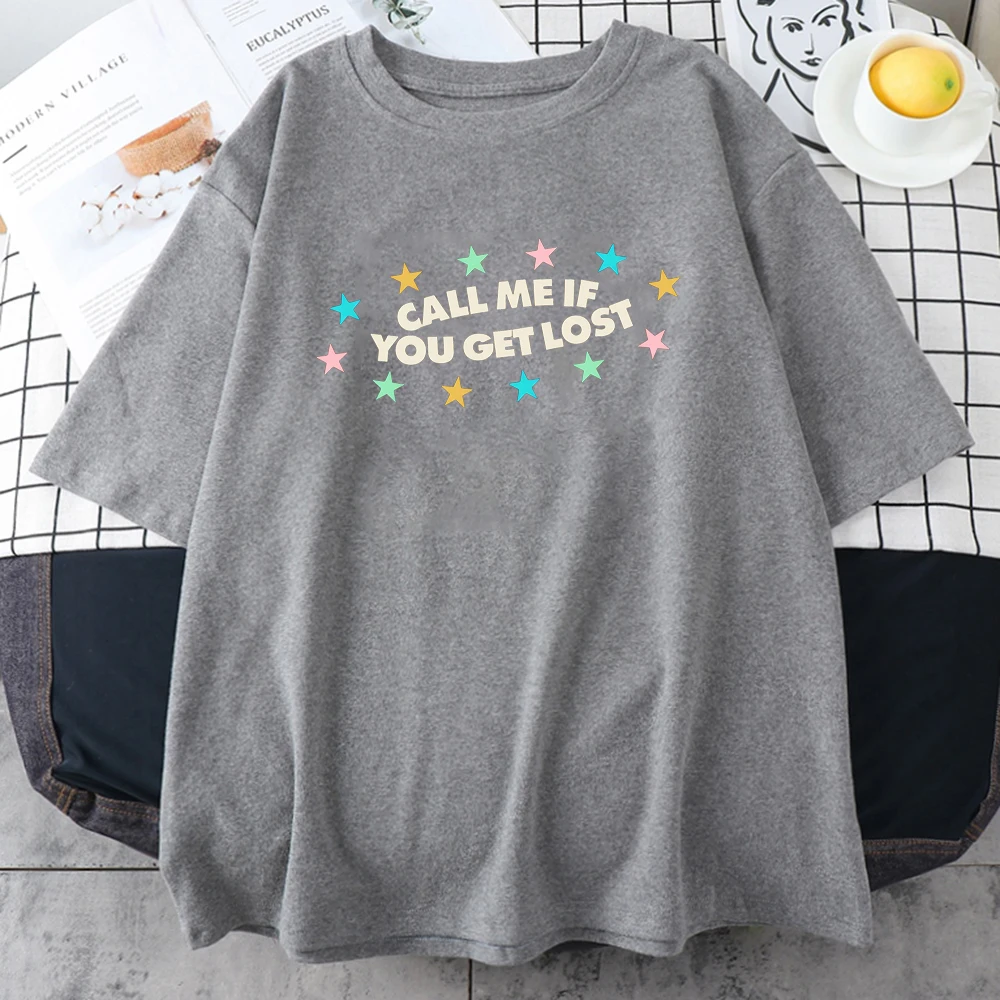 Футболка женская с принтом Call Me If You Lost, повседневная милая мягкая рубашка с коротким рукавом в стиле ретро, лето