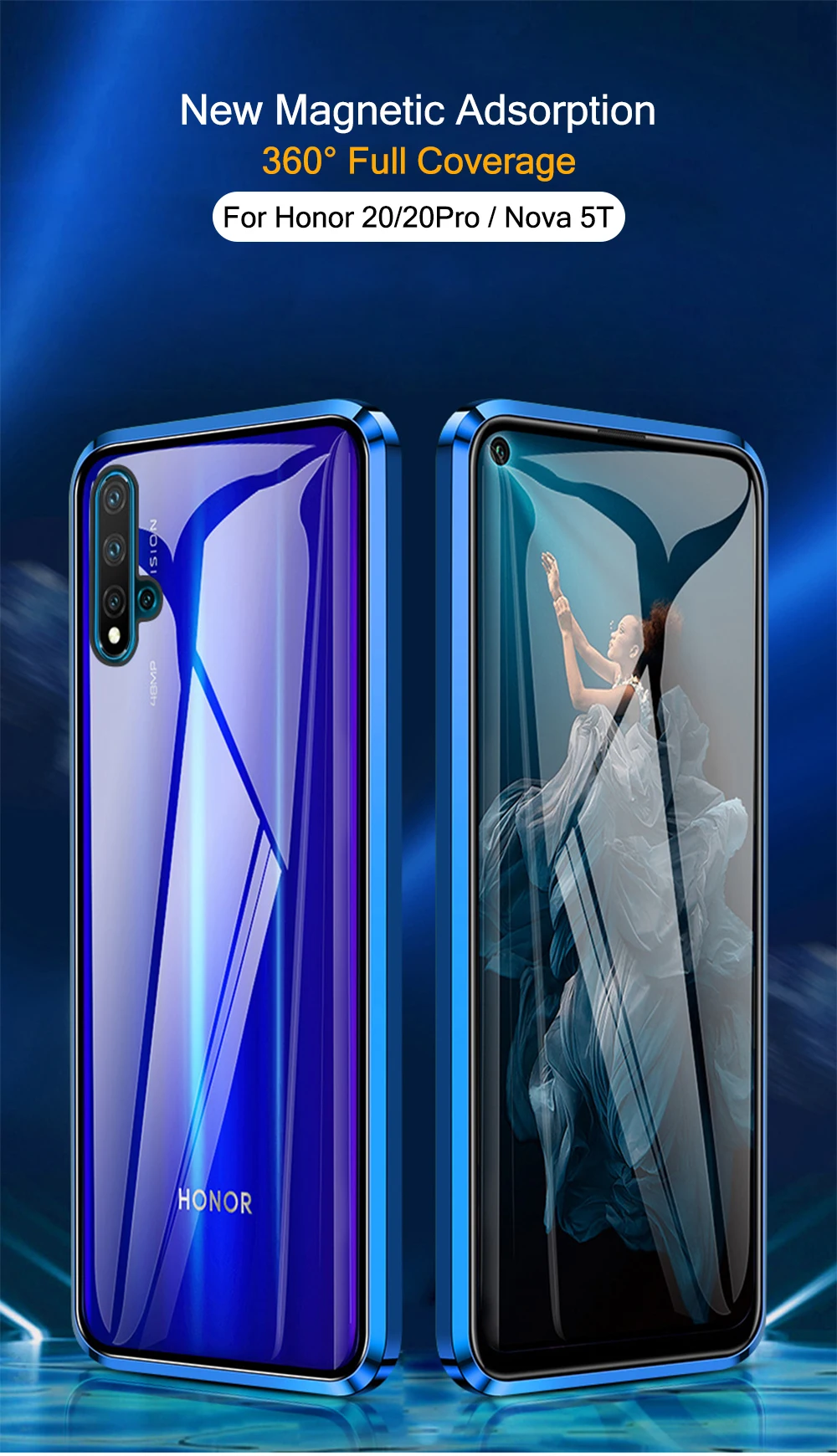 Металлический магнитный чехол для Huawei Nova 5T, двухсторонний чех...
