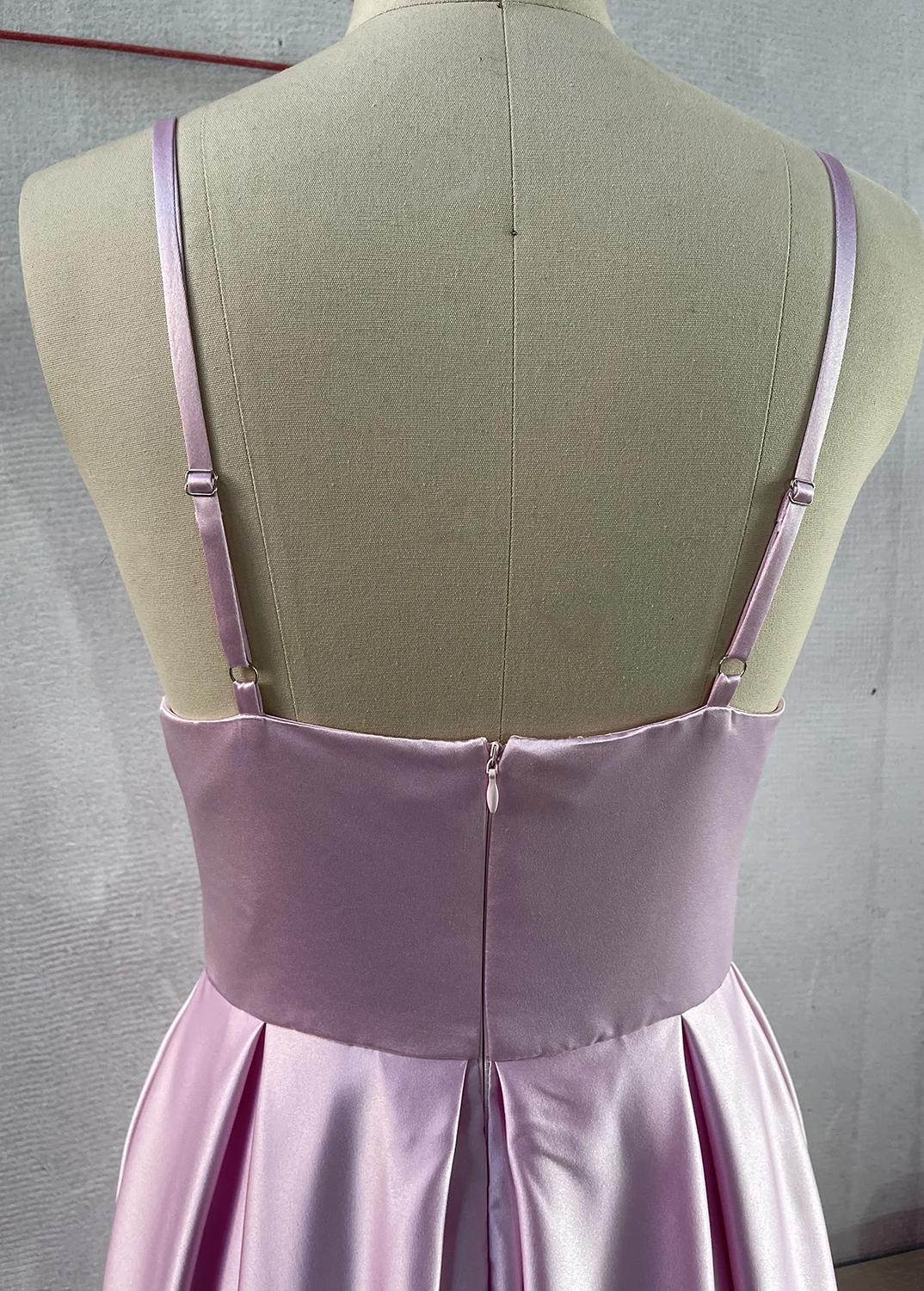 Атласное вечернее платье на бретельках, с V-образным вырезом и разрезом сбоку