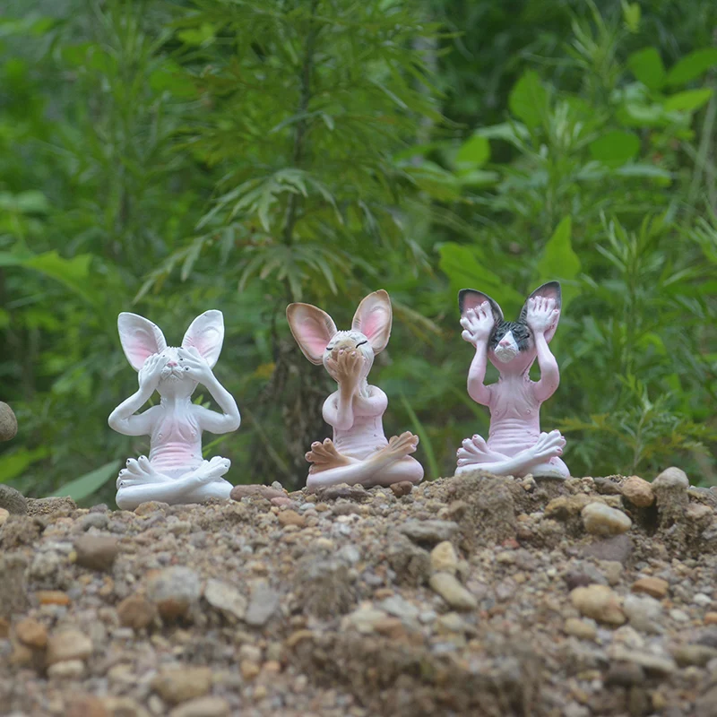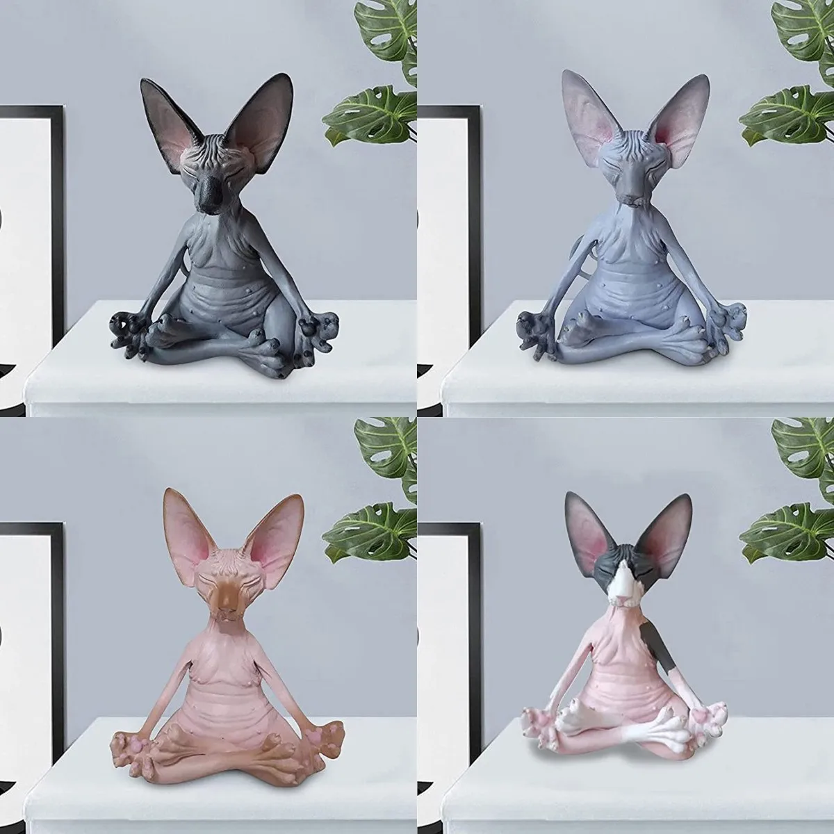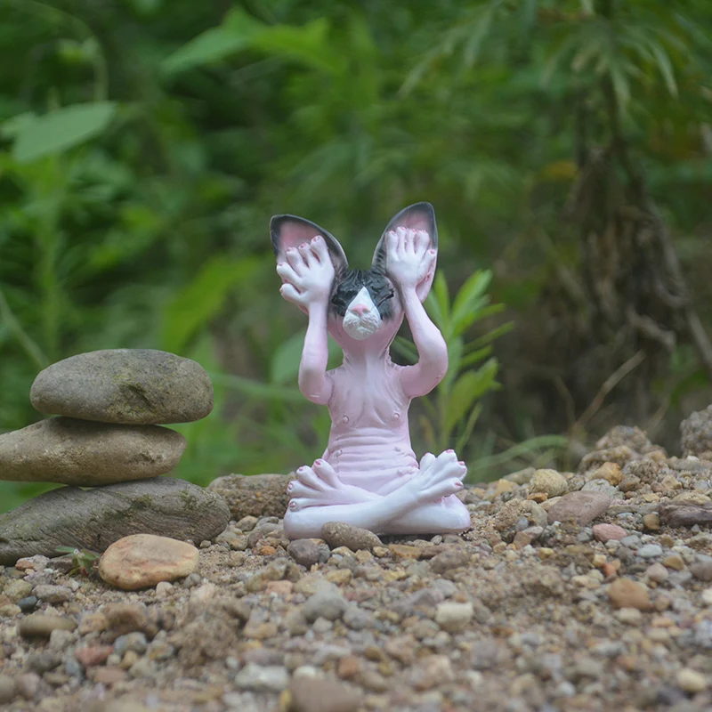 Внутренний декор для автомобиля, кошка, статуэтка медитации, миниатюрная статуэтка Будды, кошка, модель животного, кукла, игрушки, кошка без волос