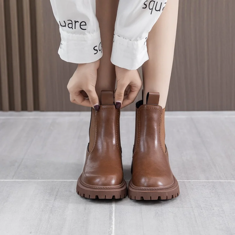 Женские ботинки челси из натуральной кожи, новинка сезона осень-зима 2021, модные повседневные ботильоны из искусственной кожи, женские ботинки Martin в стиле ретро на массивной платформе