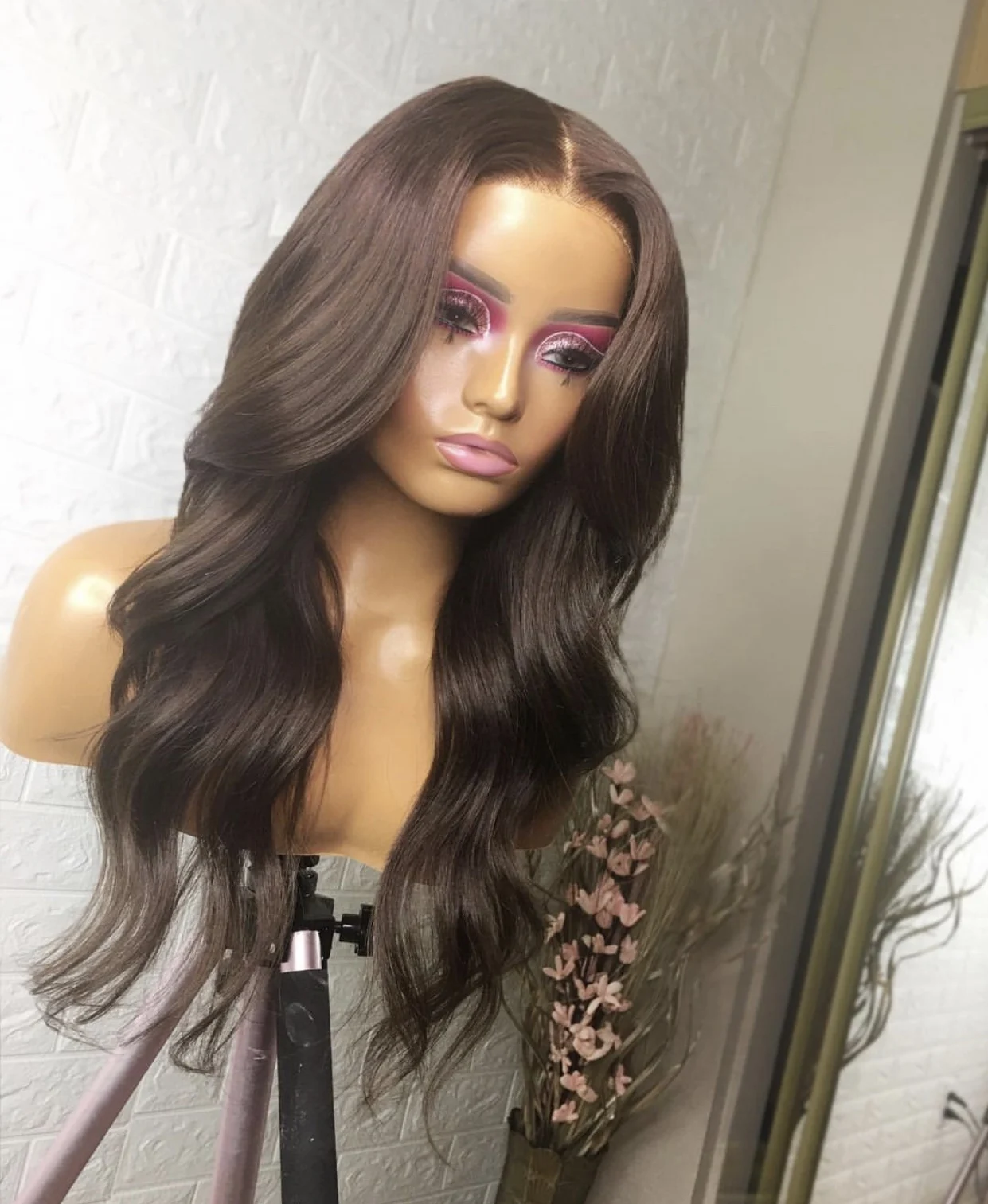 # 1B 30 22-26 дюймов Омбре коричневый цвет мягкая волна длинный бесклеевой кружевной передний парик высокая температура для черных женщин с детскими волосами