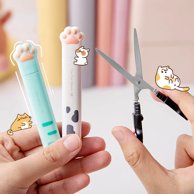 1 шт., случайный цвет, милый кот, ножницы с защитным чехлом для скрапбукинга, DIY инструменты, студенческие портативные принадлежности для журналистики