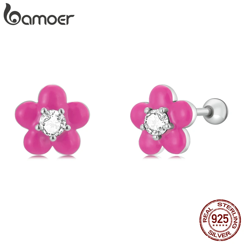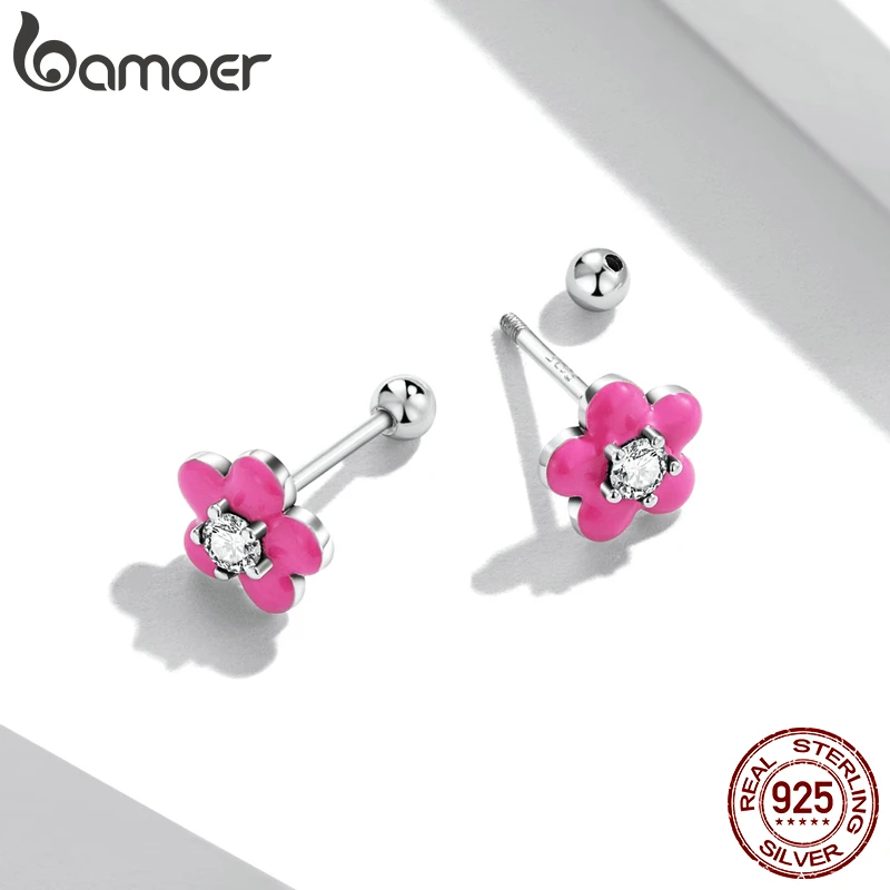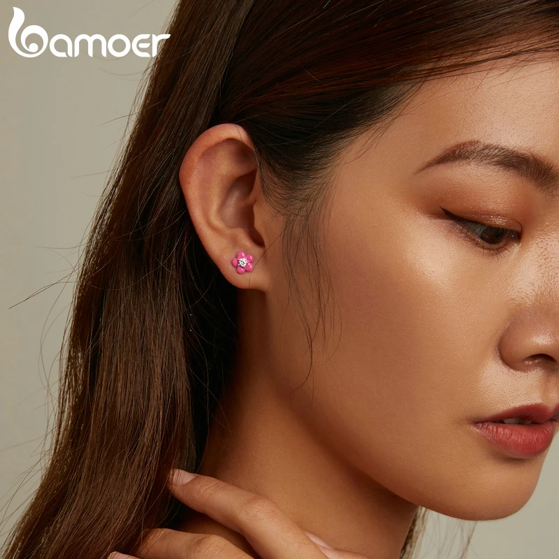925 пробы серебряные серьги-гвоздики bamoer с эмалью, гипоаллергенн...