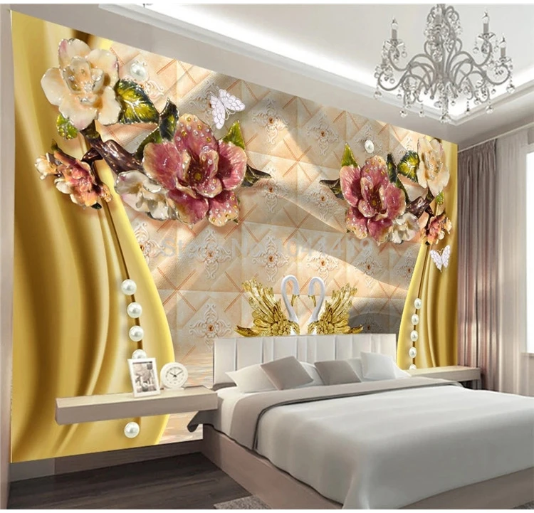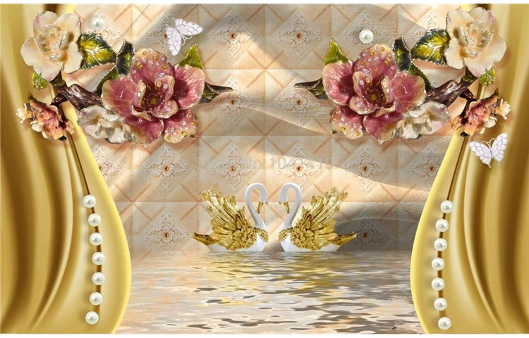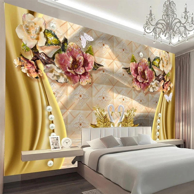 Пользовательские Настенные обои 3D стерео ювелирные изделия роспись на шелке Гостиная ТВ спальня фон Настенный декор роскошный дом 3D фото обои