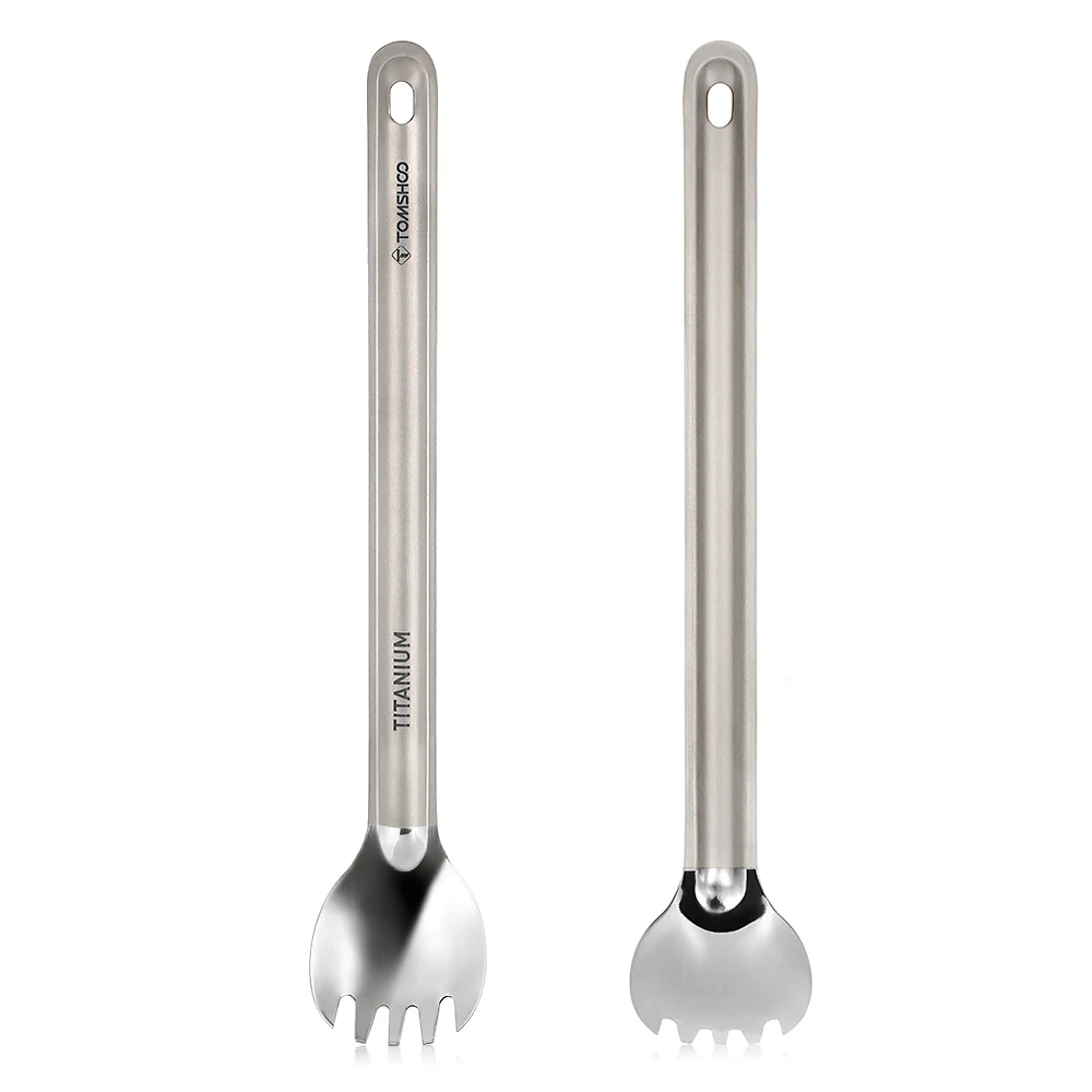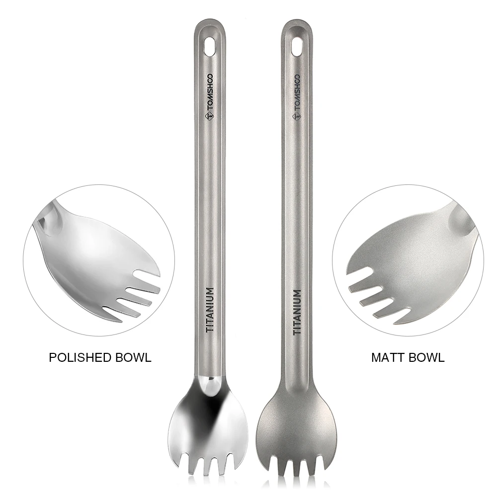 Столовые приборы Tomshoo из титана с длинной ручкой, портативные столовые приборы с матовой отделкой для пикника и походов