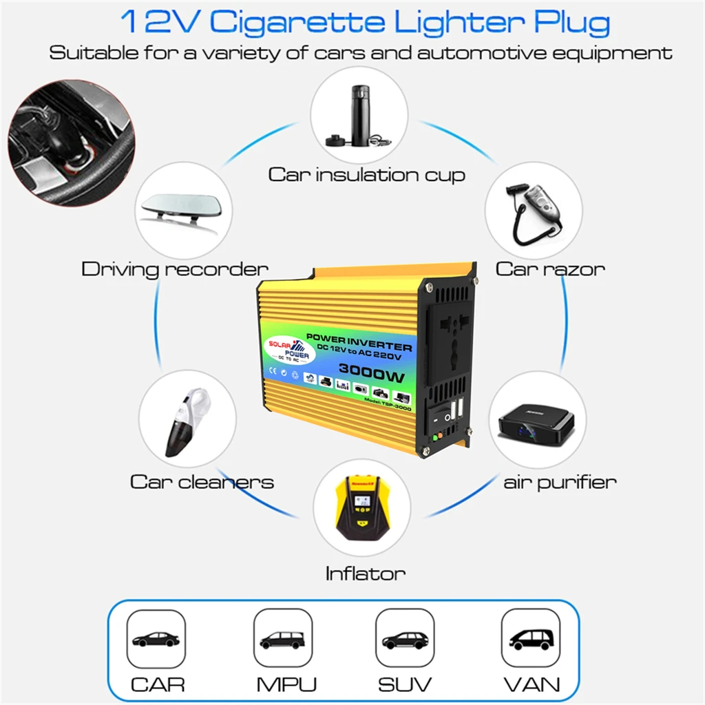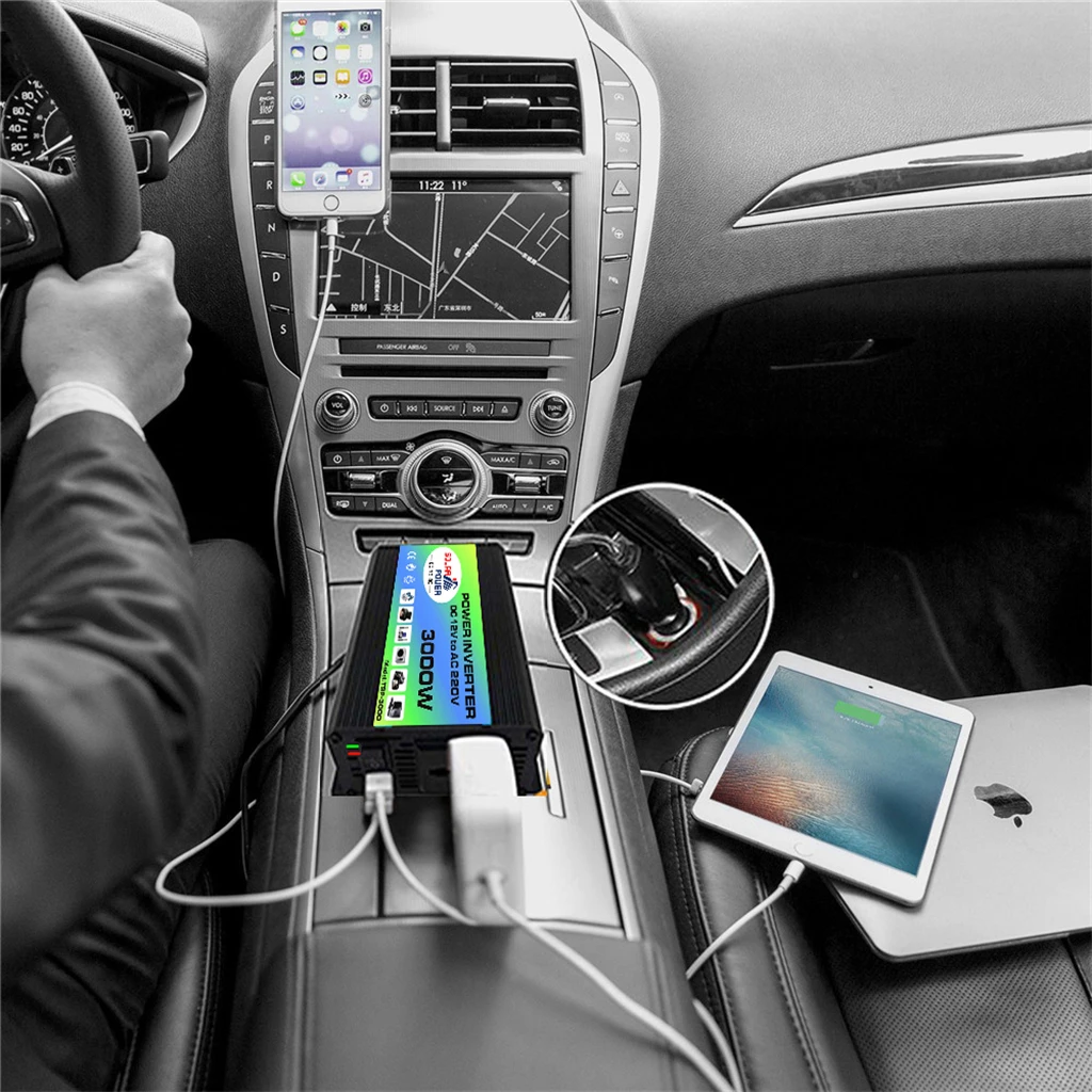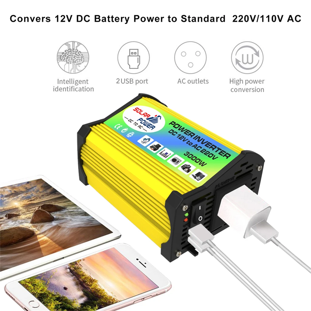 Автомобильный преобразователь с 12 В на 220 Вv300w, инвертор с двойным USB-разъемом, модифицированный синусоидальный сигнал, универсальная розетка