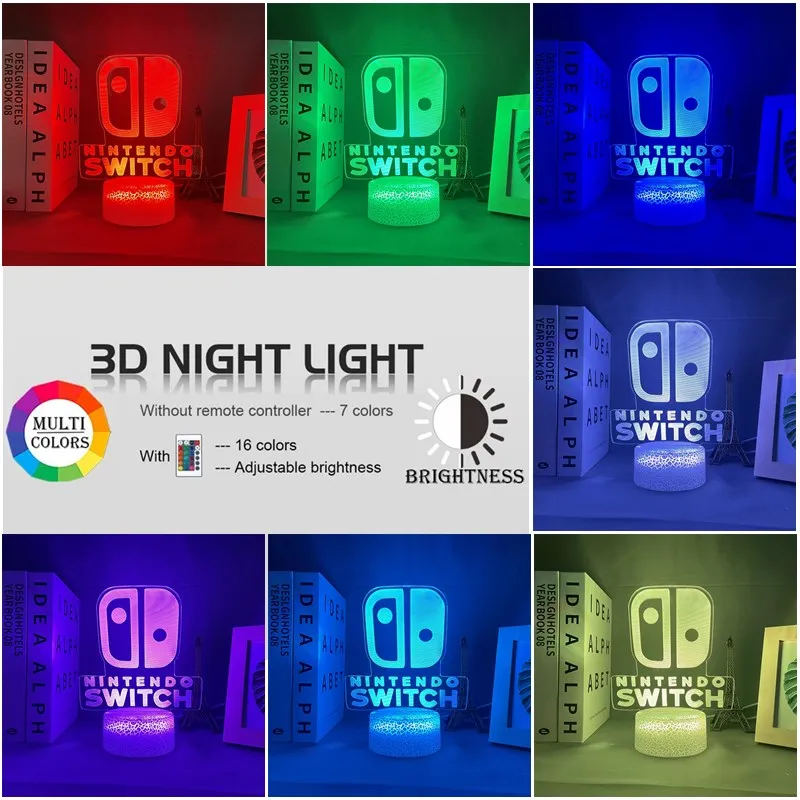 3d-ночник для игровой комнаты Nintendo Switch, настраиваемая Настольная лампа с сенсорным управлением, с логотипом, для детей, рождественский подарок