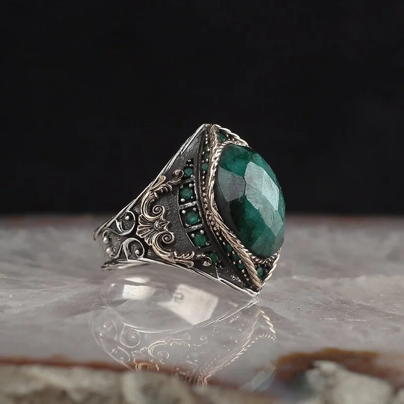 Популярные Ретро дворец тайское серебристого цвета для мужчин кольц...