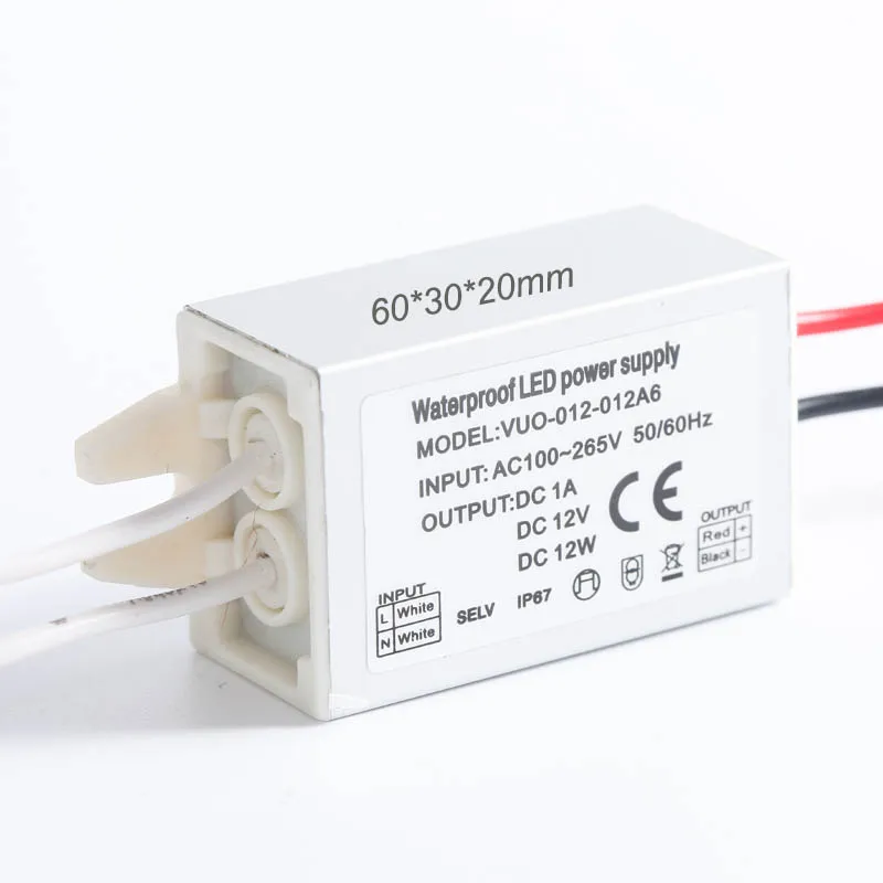 Тонкий адаптер для внешней ленты, Внешний легкий трансформатор, импульсный источник питания, 12 В, 24 В постоянного тока, IP67, 12 Вт, 20 Вт, 30 Вт