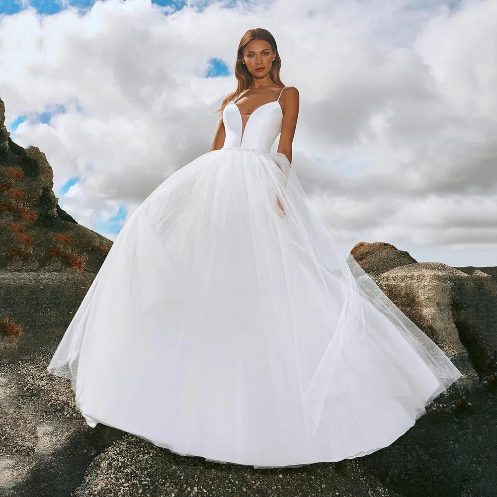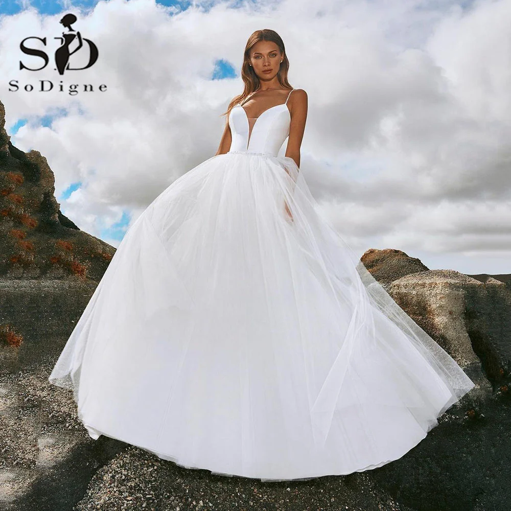 Атласное Бальное Платье soworthy, простое кружевное свадебное плать...