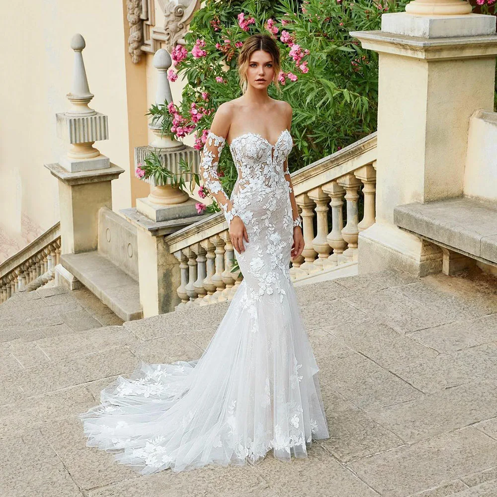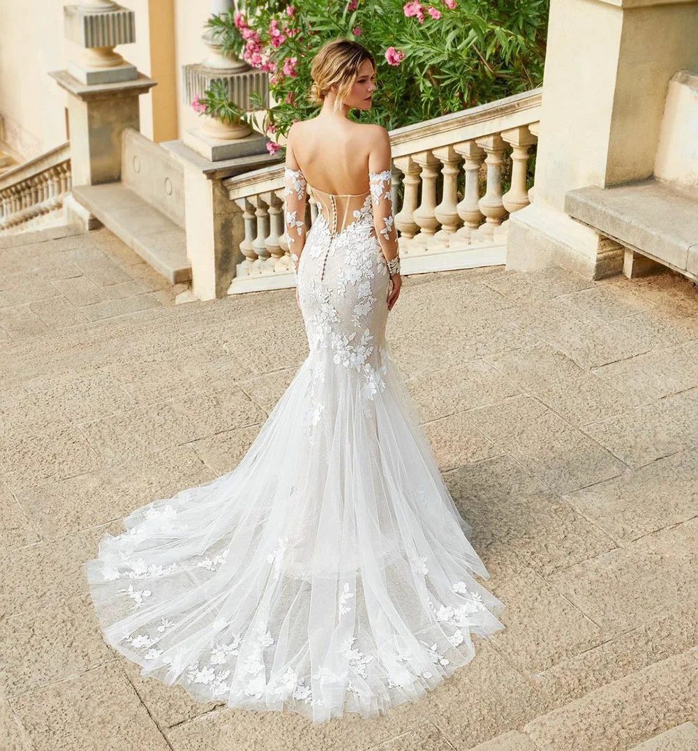 Свадебное платье-Русалка с открытыми плечами, цвет слоновой кости