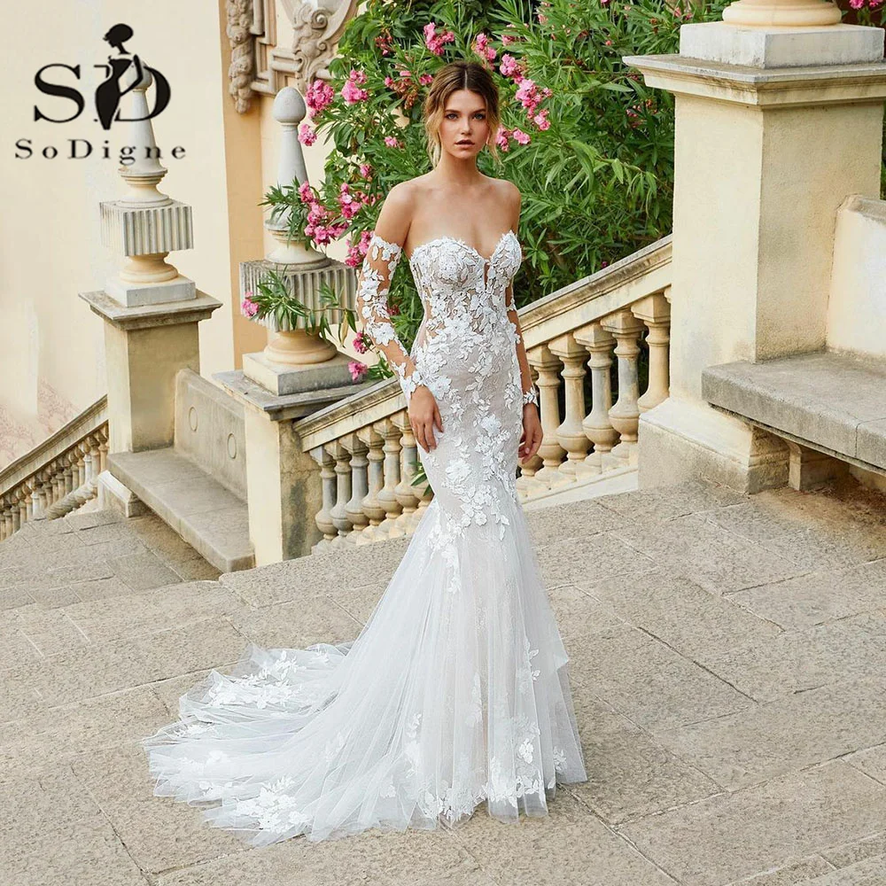 Женское свадебное платье со съемным шлейфом SoDigne, длинное кружев...