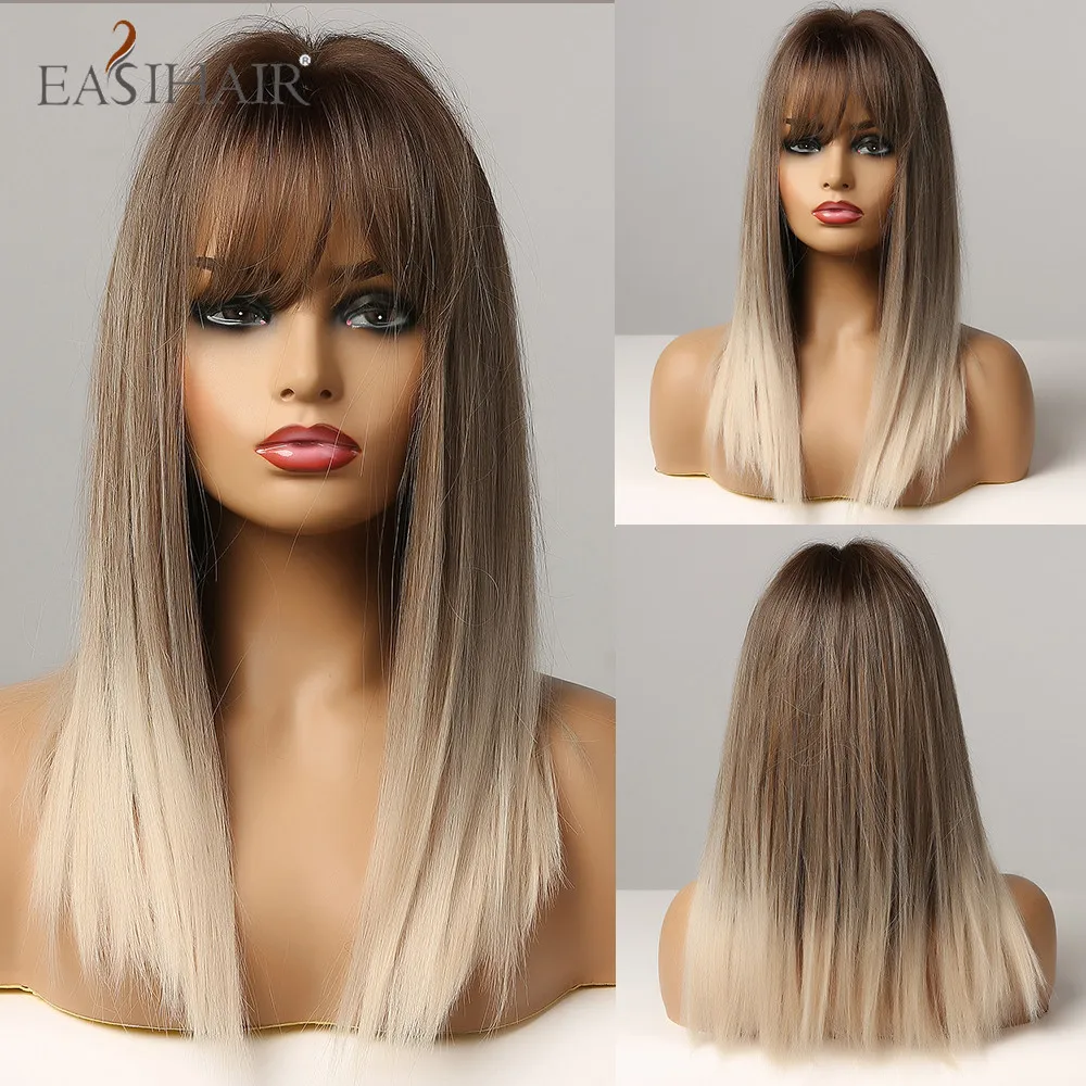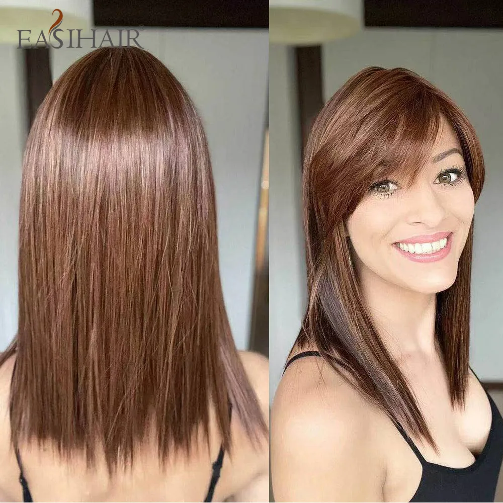 Прямые парики EASIHAIR, красные, коричневые, синтетические, для женщин, с челкой, длина плеч, натуральные, термостойкие волосы, для ежедневной носки, вечерние, для костюмированной вечеринки