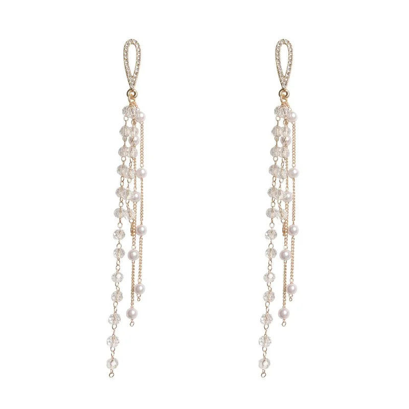 Длинные кисточки кристаллы Висячие серьги для женщин Крест Стразы В...