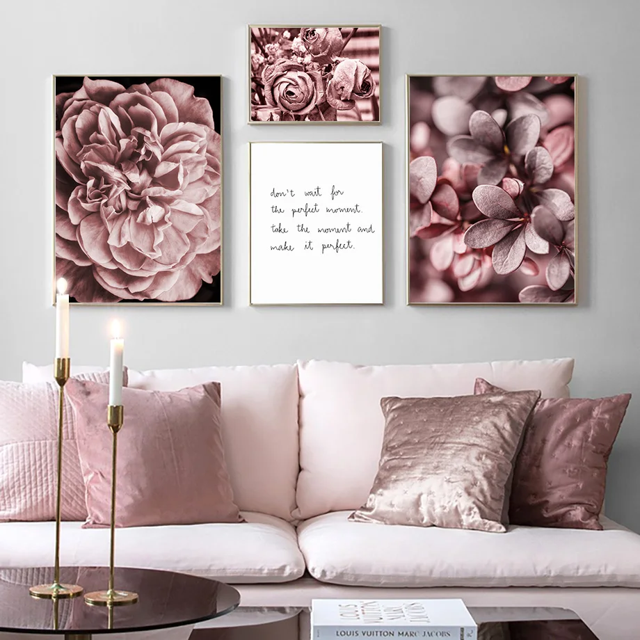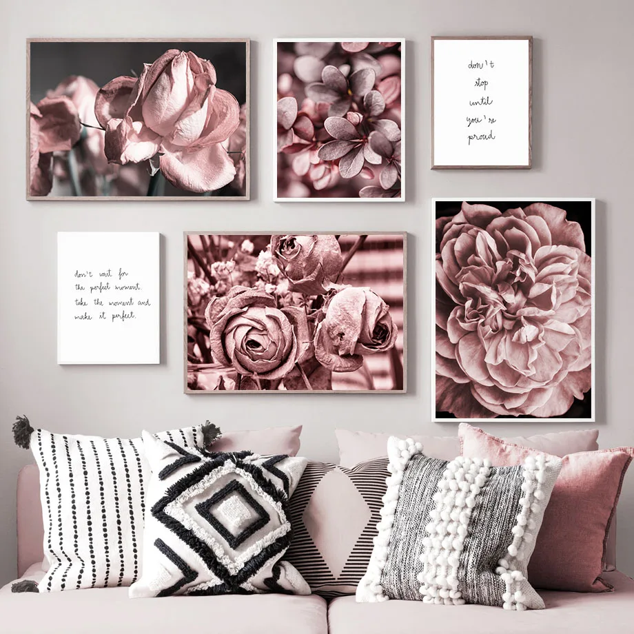 Скандинавская розовая роза, современная настенная Картина на холсте, скандинавские постеры и принты, настенные картины для декора гостиной
