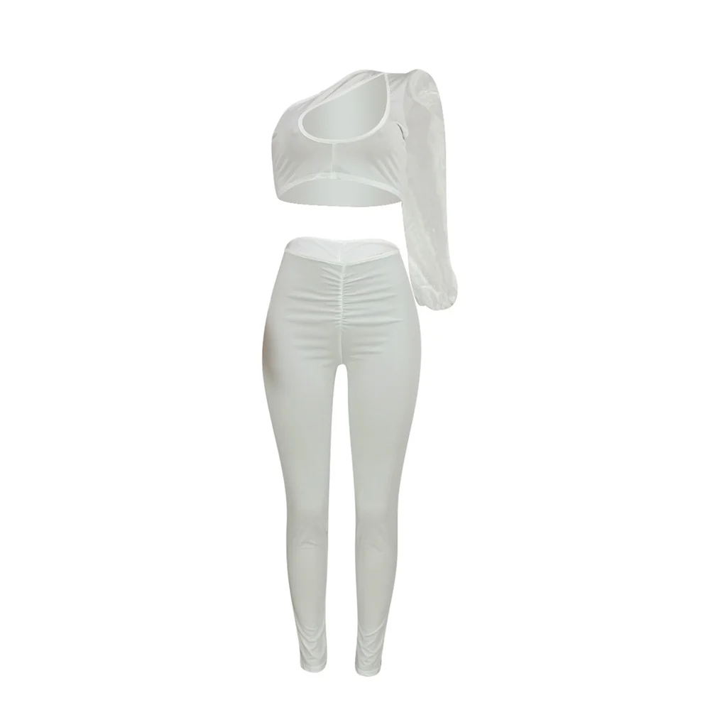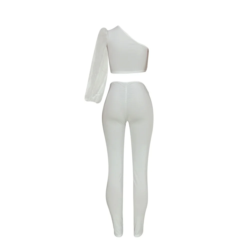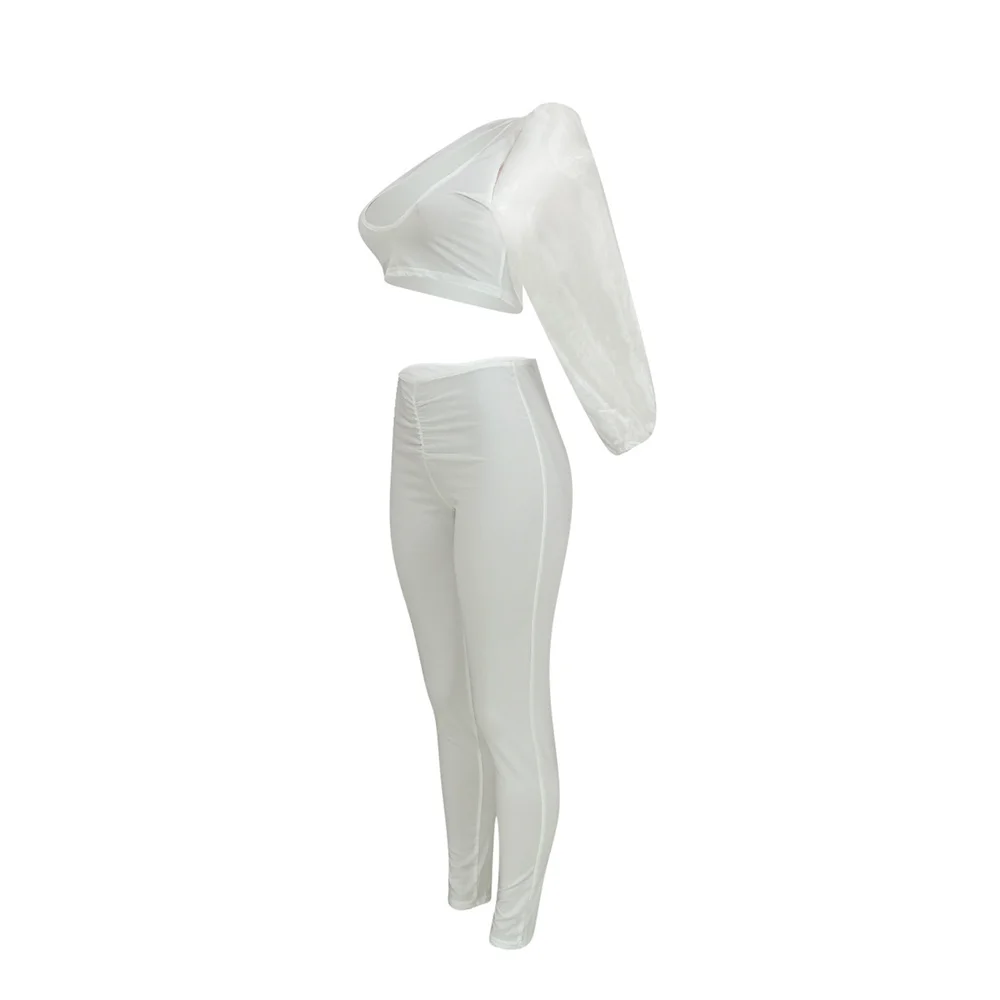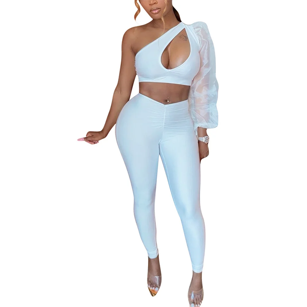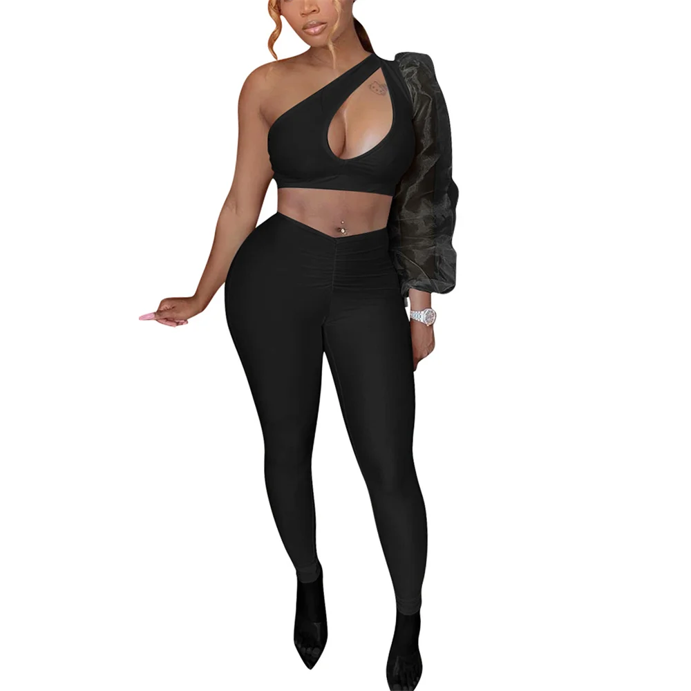 Женские пикантные комплекты из брюк Y2K, модные женские брюки-карандаш на одно плечо с пышными рукавами и разрезами, облегающие брюки, женский костюм
