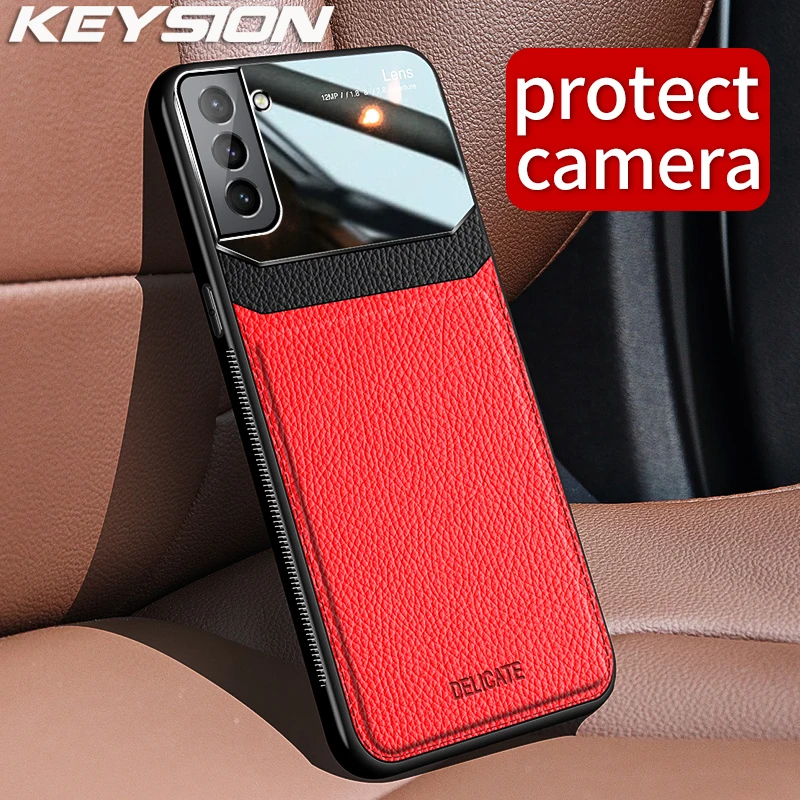 Модный чехол KEYSION для Samsung S22 Ultra 5G S22 + S21 Plus S20 + FE, кожаный стеклянный ударопрочный чехол для телефона Galaxy Note 20