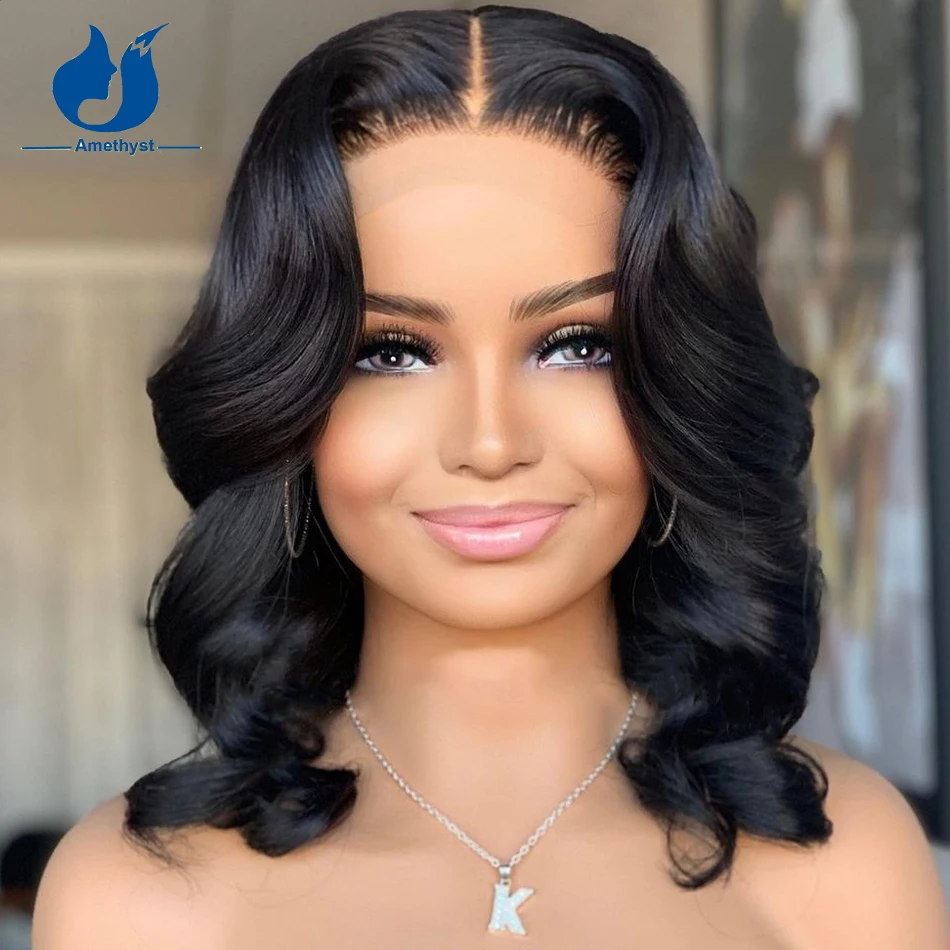 Парики из аметистового шелка, естественный цвет, волнистые, Боб, парики из человеческих волос на шнуровке спереди, парики из шелка 4X4, бразильские волосы Remy для чернокожих женщин