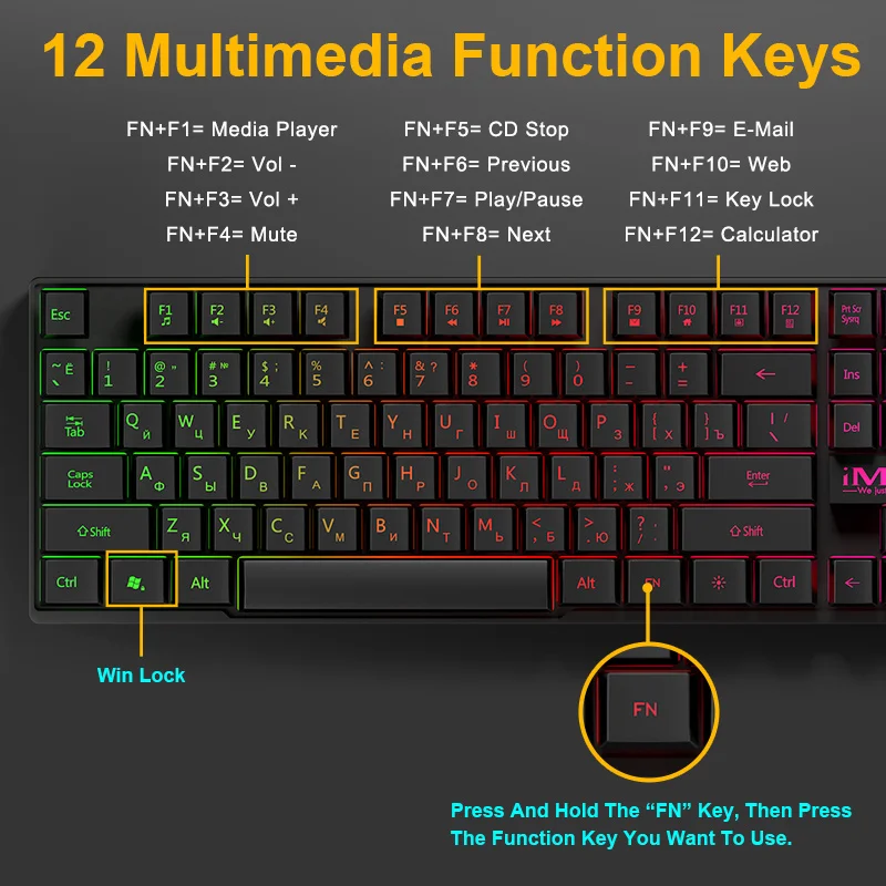 Feature 7Gamer Keyboard,104 keycaps