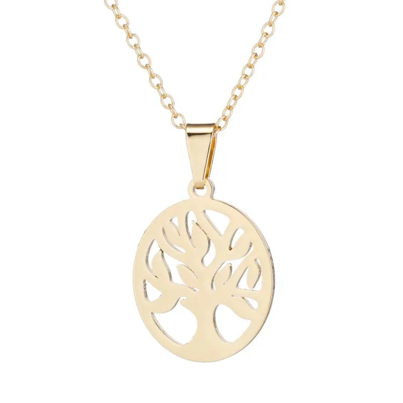 Подвеска Sinogaa 45 см, ожерелье, серьги-гвоздики, серьги из нержавеющей стали с позолотой, жизнь дерева, ожерелье, набор ювелирных изделий, ожерелья