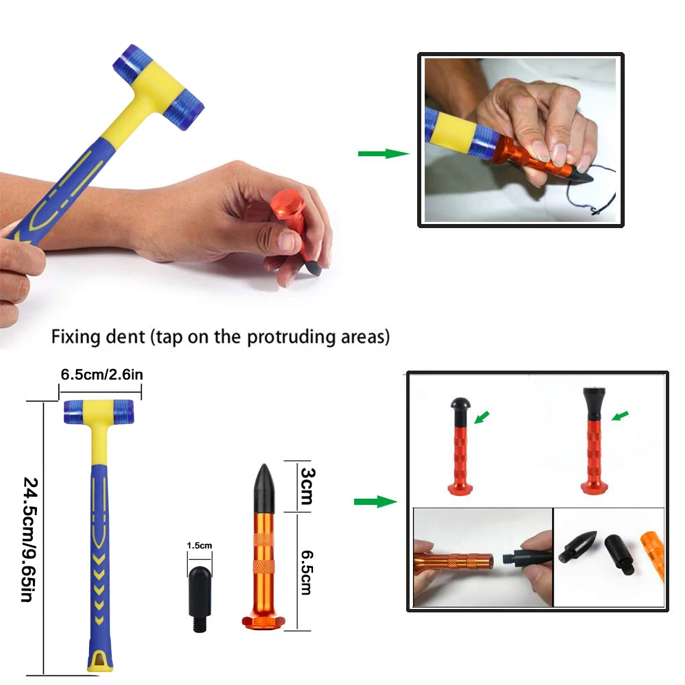 1. Инструменты для ремонта вмятин «сделай сам» доступны по цене-без рисунков, без повреждений вашей оригинальной автомобильной краски. Без токсичного материала, инструменты для удаления вмятин не навредят вашему автомобильному корпусу.