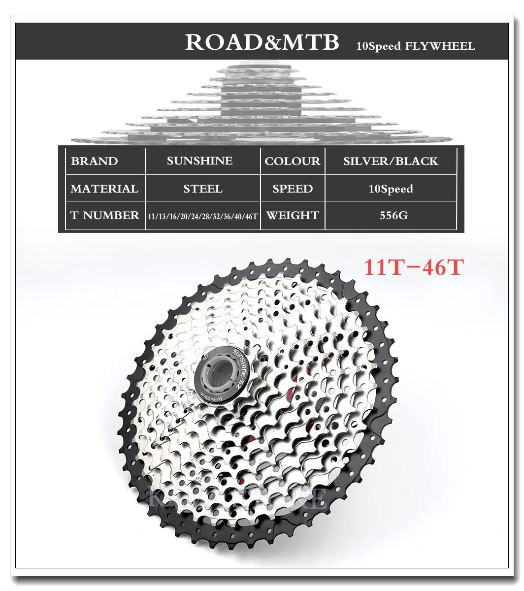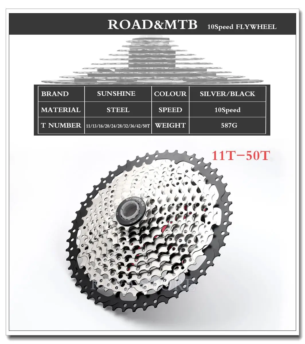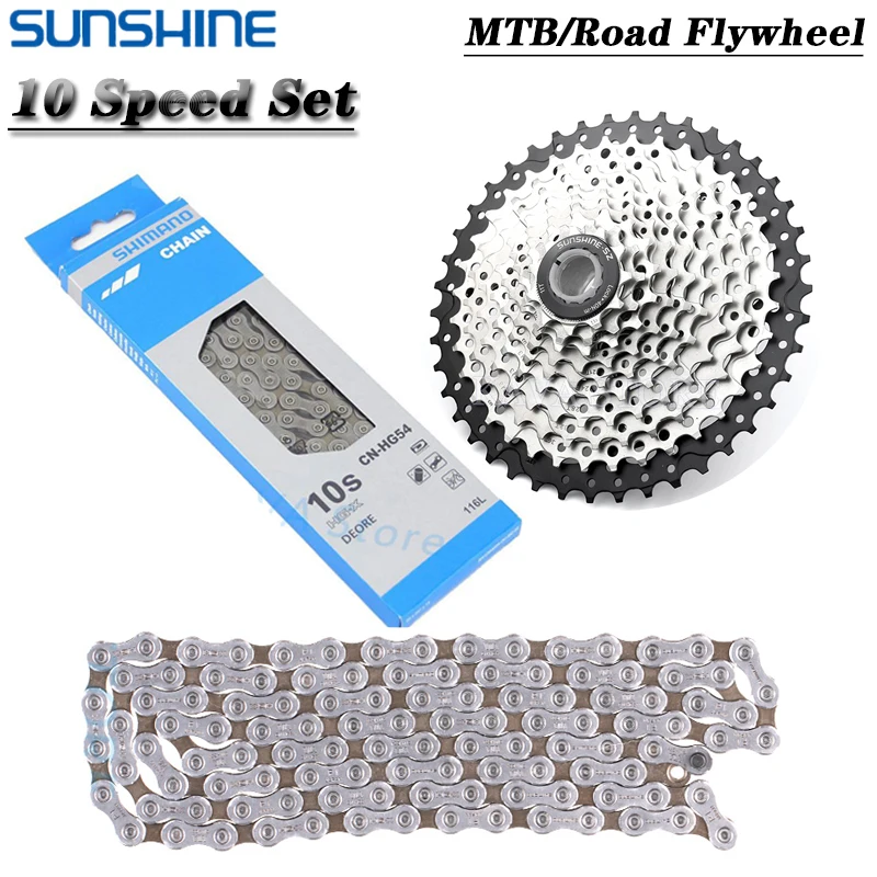 Велосипедный маховик SUNSHINE, 10 скоростей, кассета 10 в 11-2528323640424650T с велосипедной цепью, запчасти KMC X10 Shimano HG54