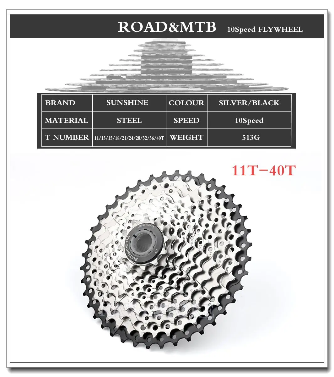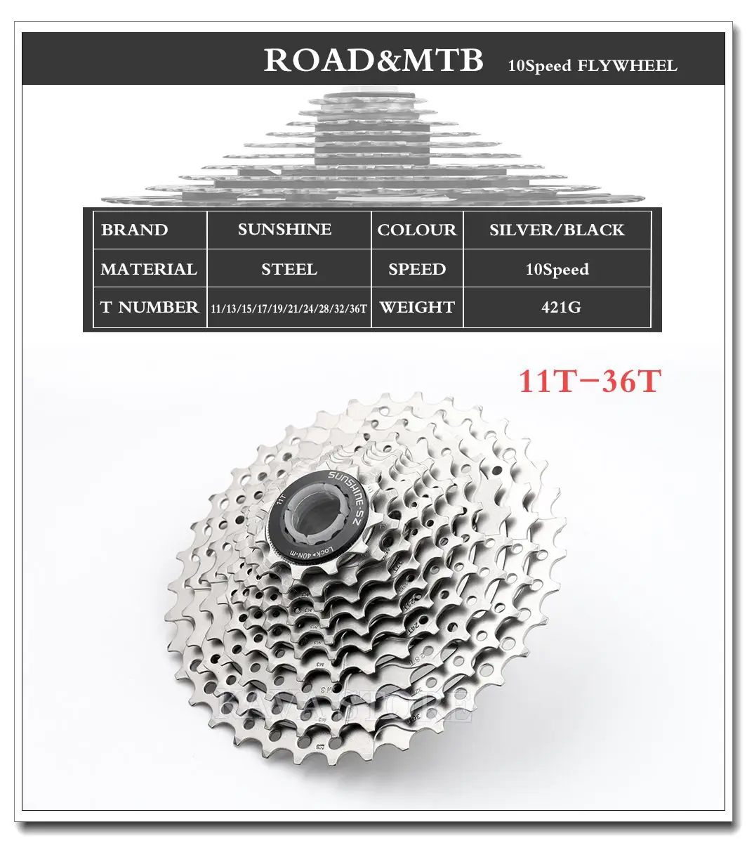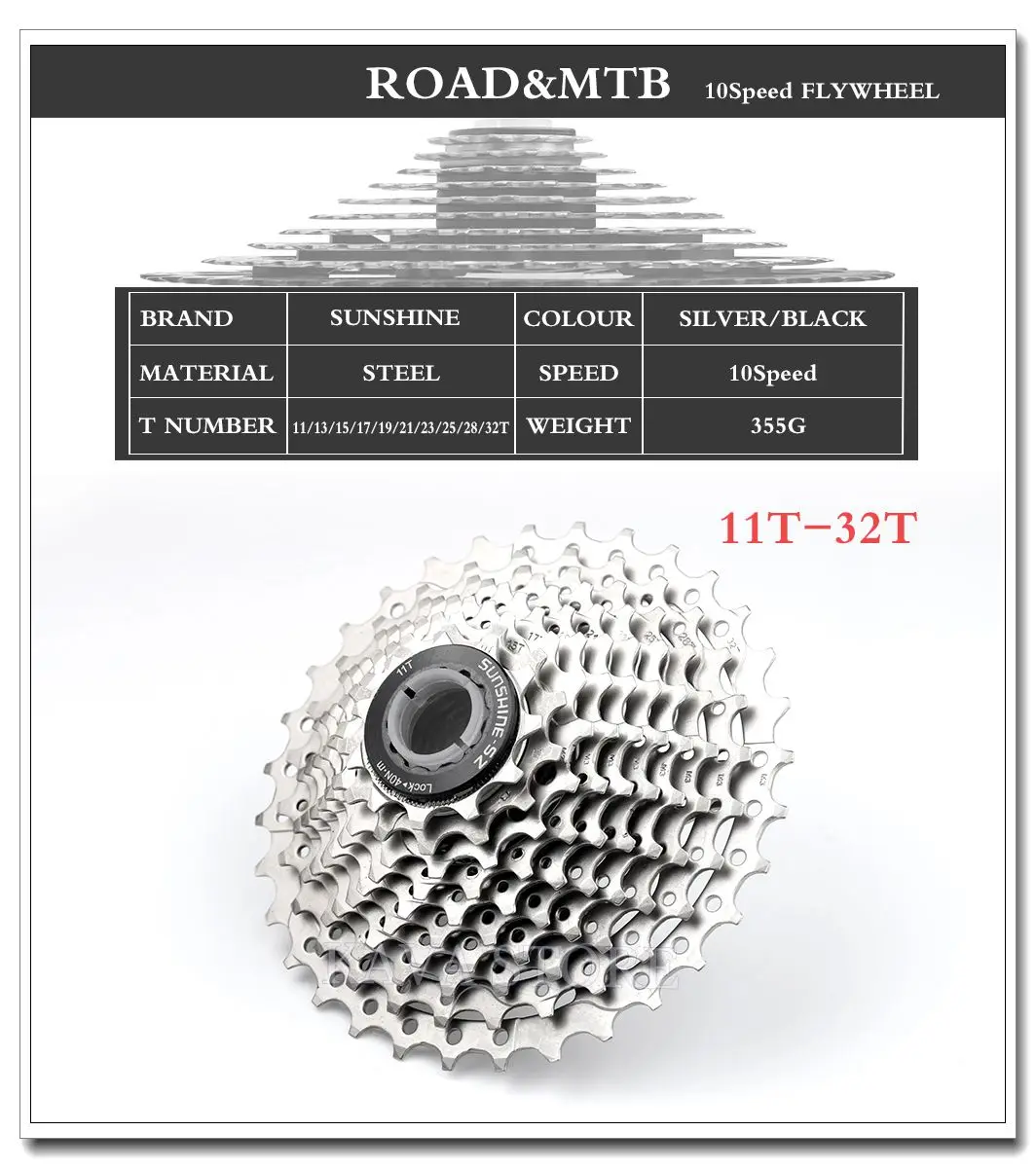 Велосипедный маховик SUNSHINE, 10 скоростей, кассета 10 в 11-2528323640424650T с велосипедной цепью, запчасти KMC X10 Shimano HG54