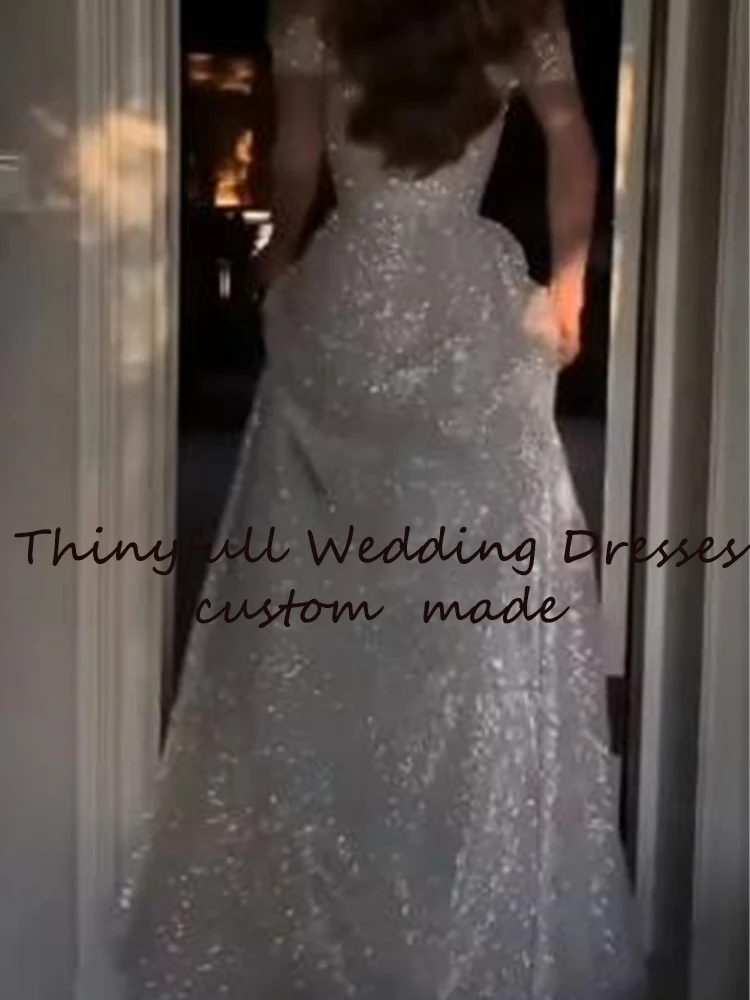Женское блестящее длинное свадебное платье Thinyfull, ТРАПЕЦИЕВИДНОЕ платье без рукавов и бретелек с Боковым Разрезом, вечернее праздничное платье принцессы, 2022